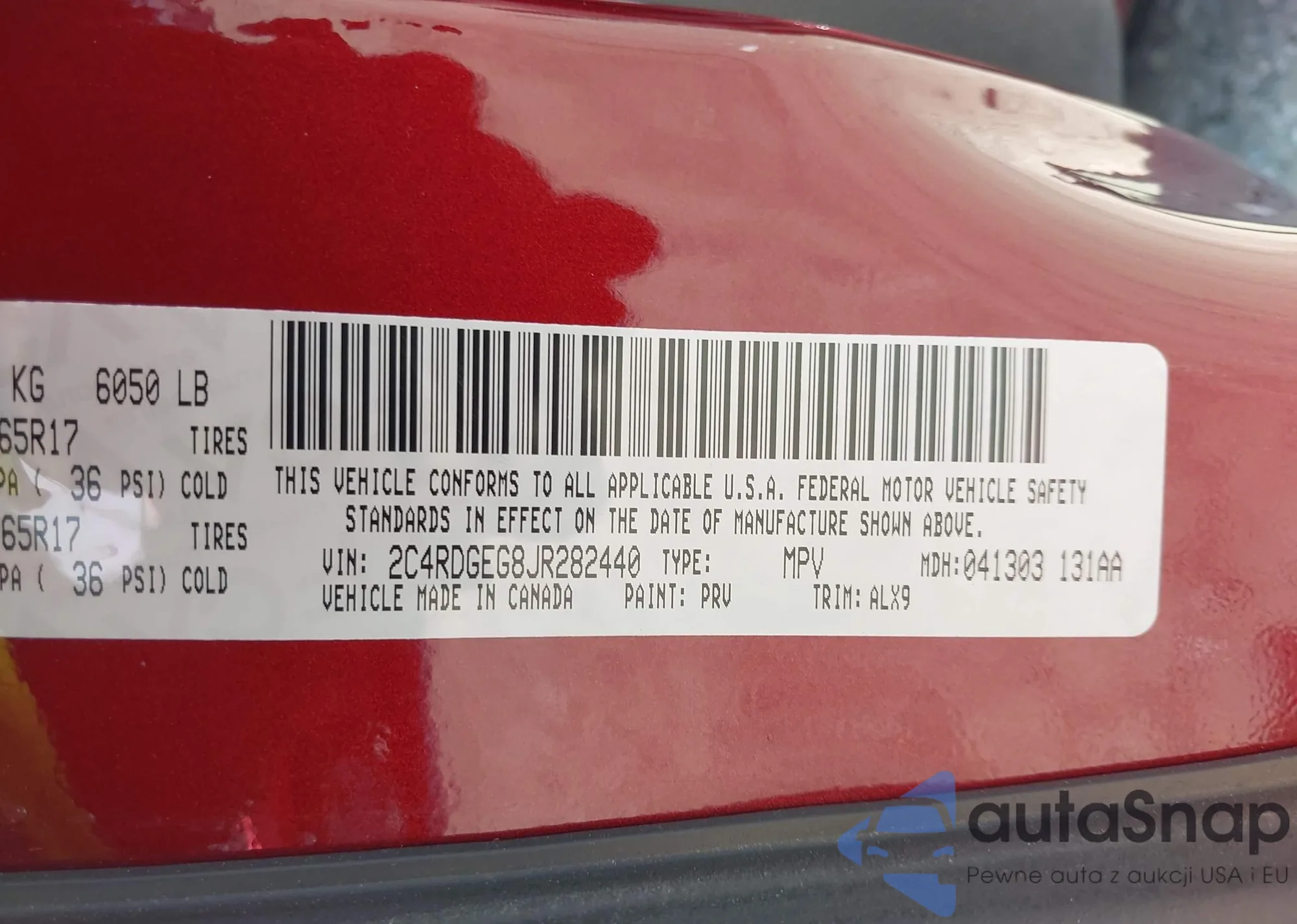 LOT: 42906869 VIN: 5J8TB3H52DL013007