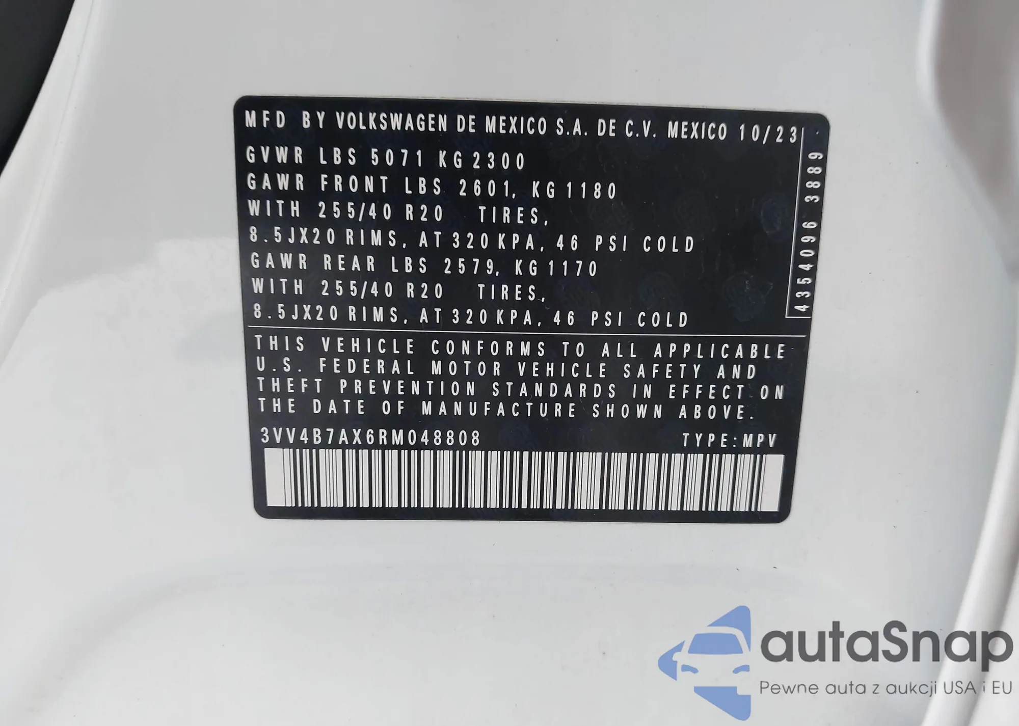• VIN 3VV4B7AX6RM048808