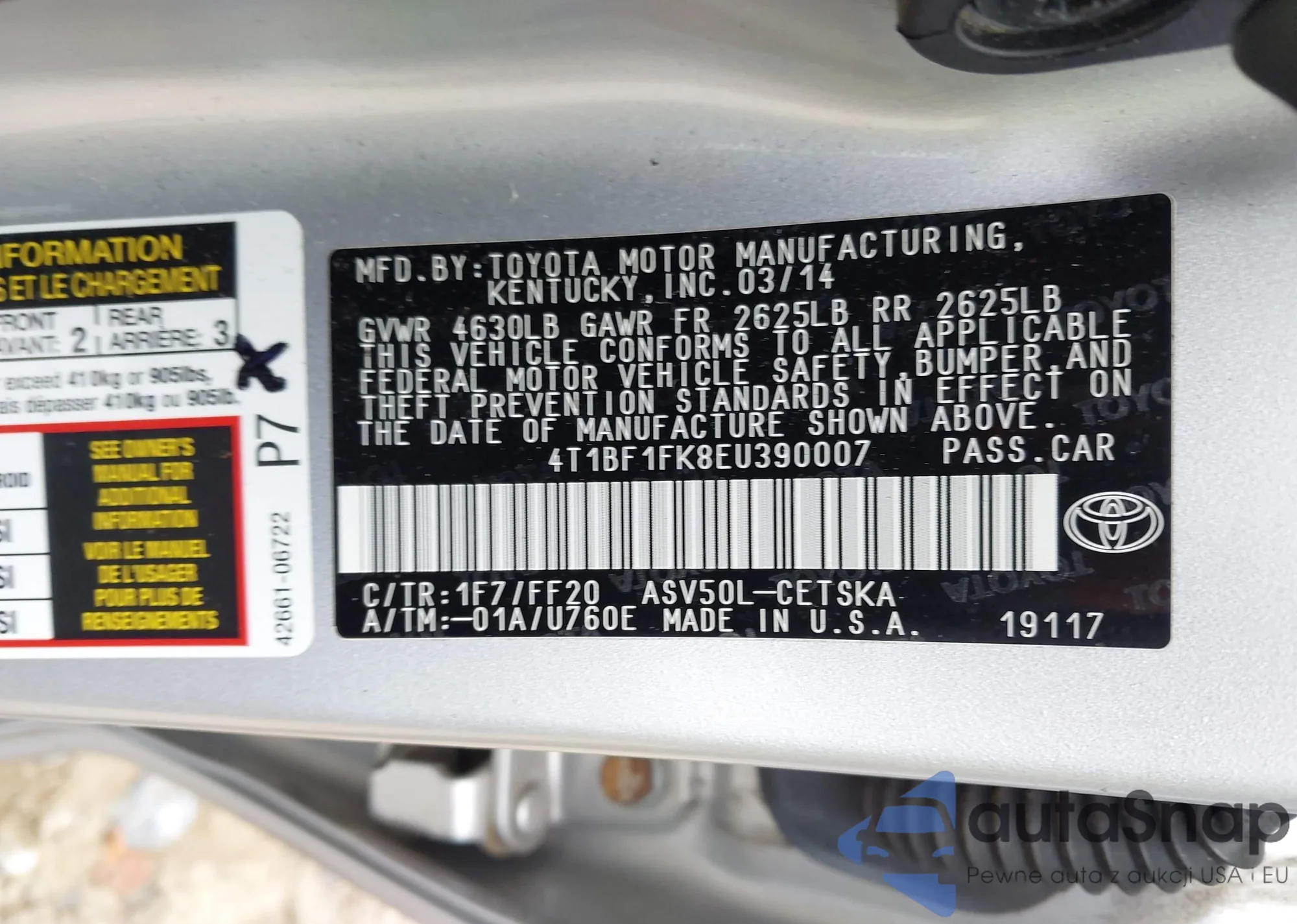 LOT: 43226475 VIN: JTHCK262385021742