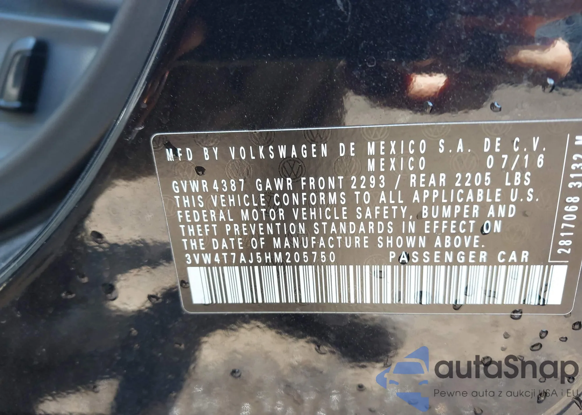 • VIN 3VW4T7AJ5HM205750