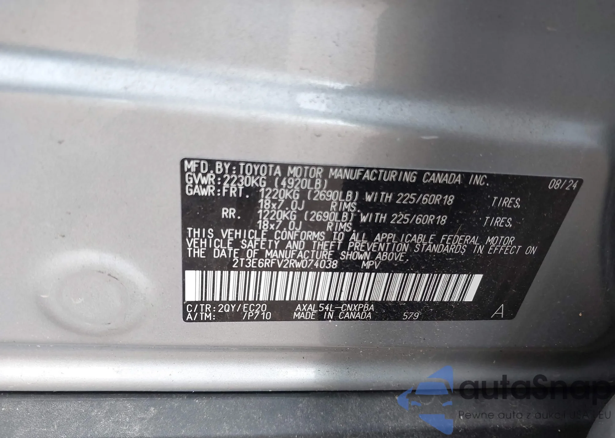 LOT: 43208742 VIN: 2T3E6RFV2RW074038