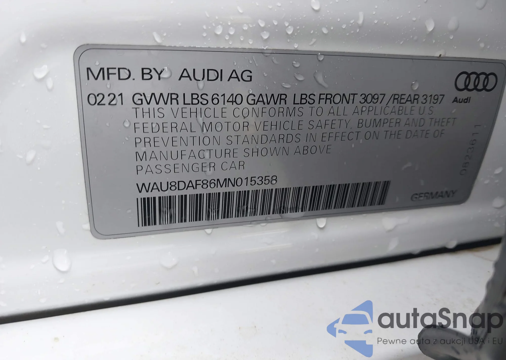 • VIN WAU8DAF86MN015358