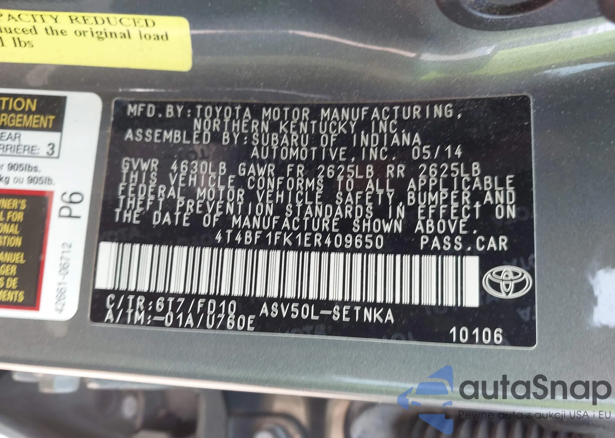 • VIN 4T4BF1FK1ER409650