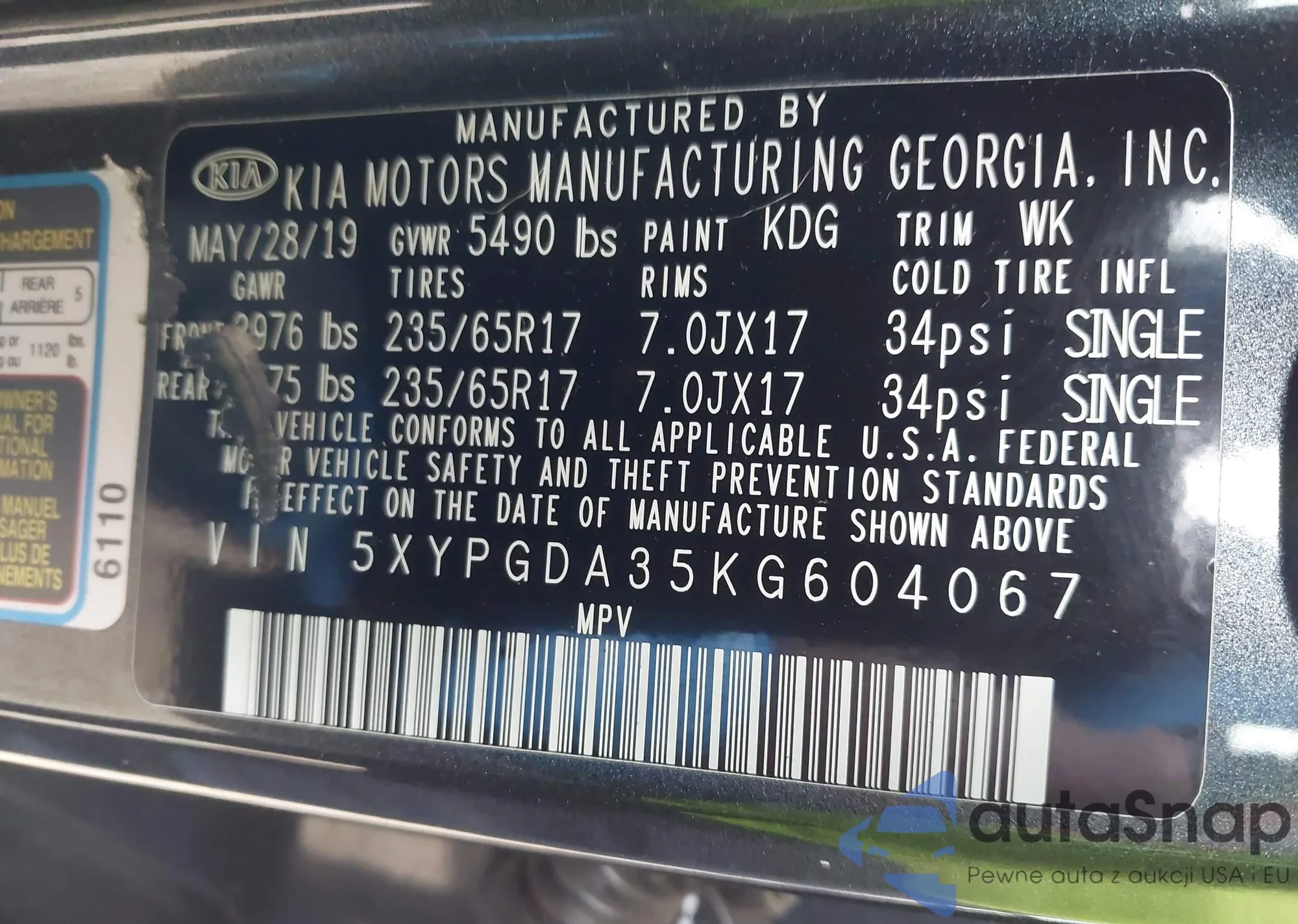 • VIN 5XYZK4AG7CG132966