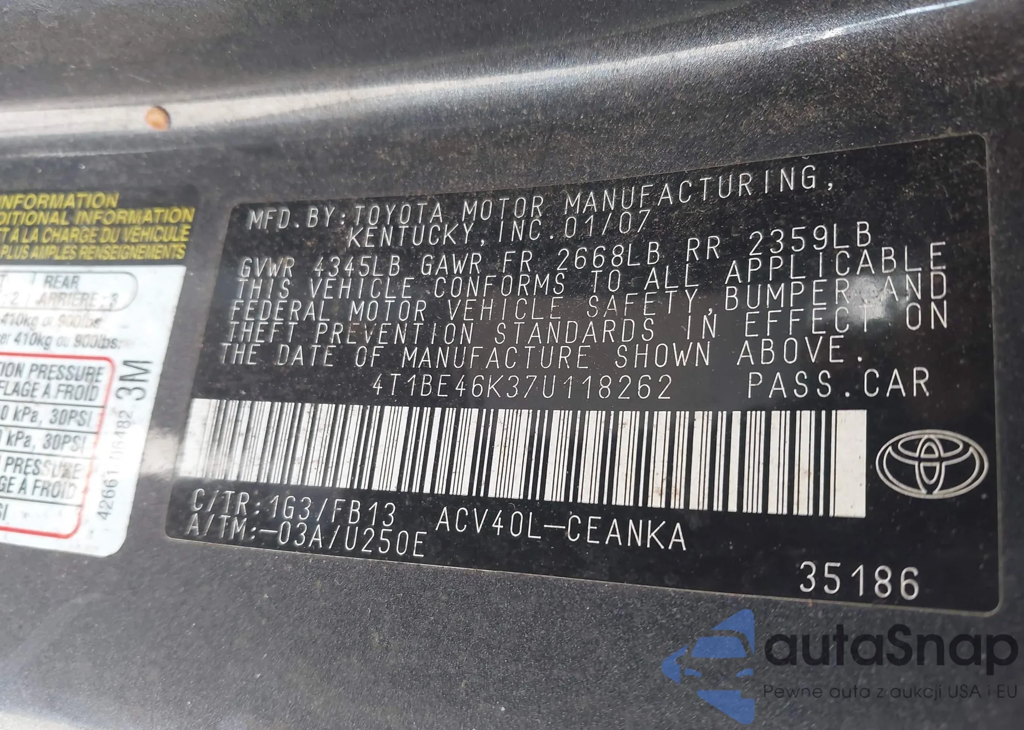 • VIN 4T1BE46K37U118262
