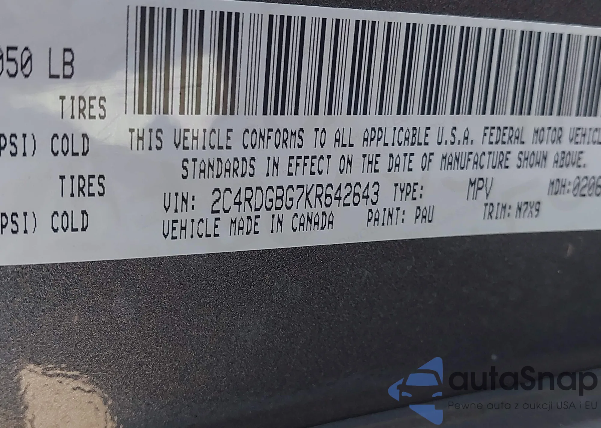 • VIN 2C4RDGBG7KR642643