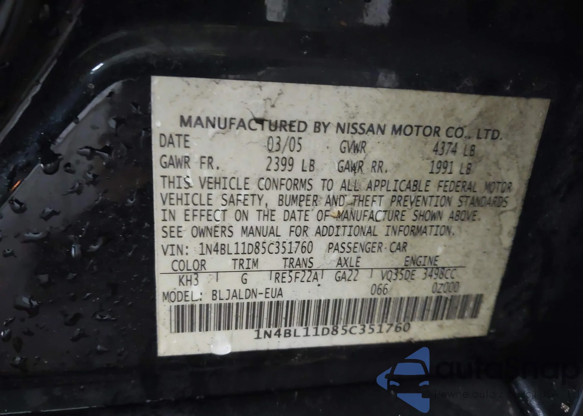 LOT: 42846292 VIN: 1N4AL3AP2HN332082