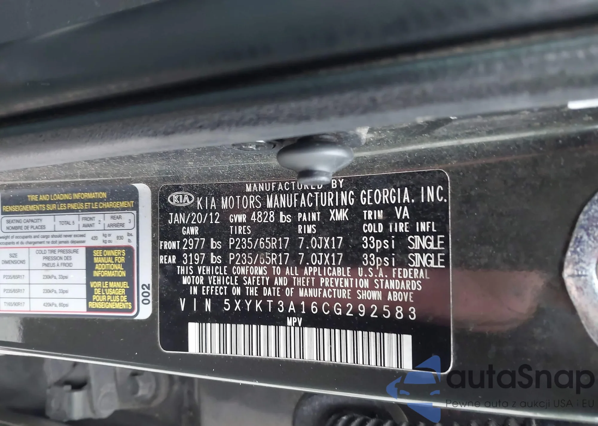 LOT: 43299087 VIN: 5XYKT3A16CG292583