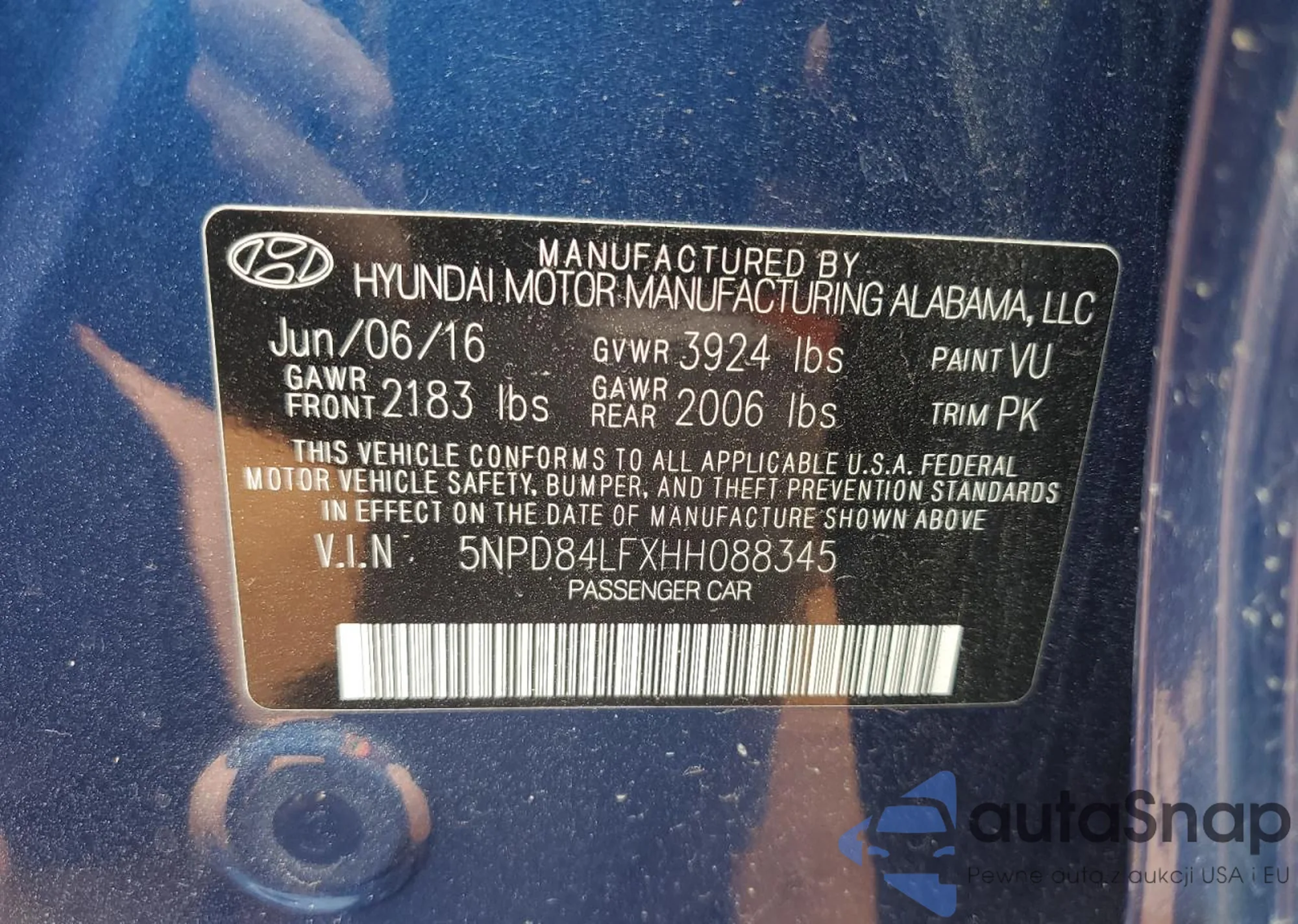 • VIN 5NPD84LFXHH088345