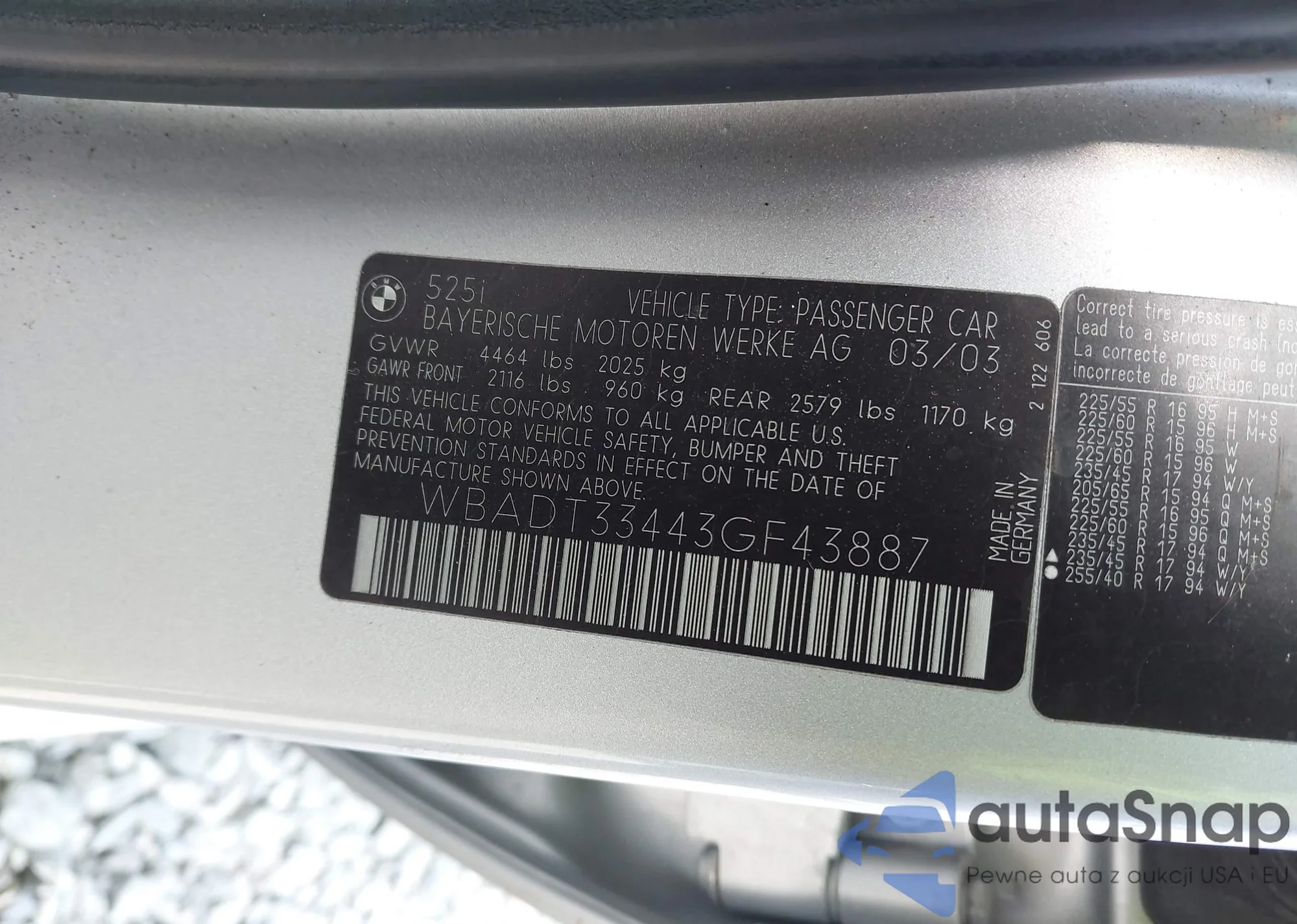LOT: 43171732 VIN: WBADT33443GF43887