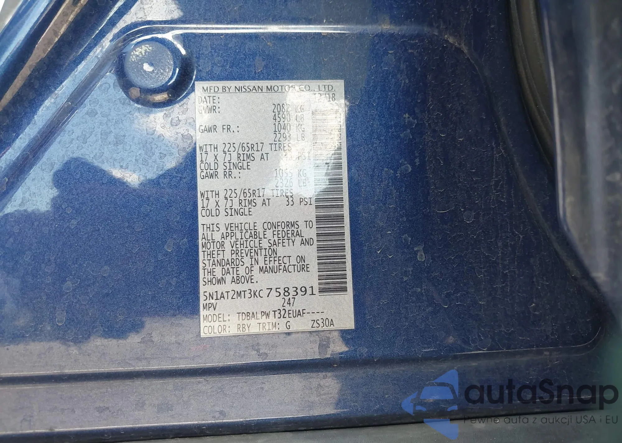 LOT: 43264330 VIN: 5N1AT2MT3KC758391