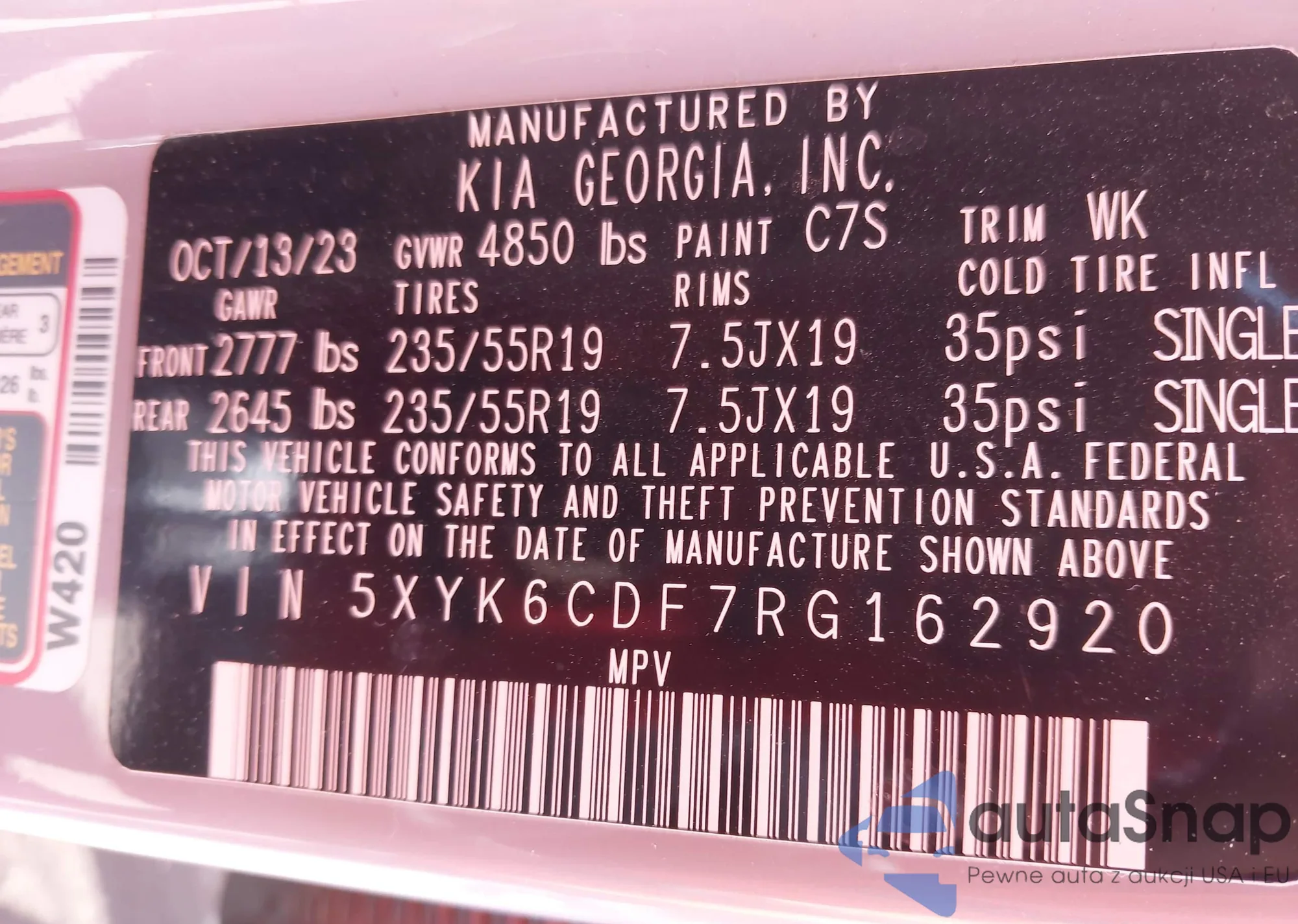 • VIN 5XYK6CDF7RG162920
