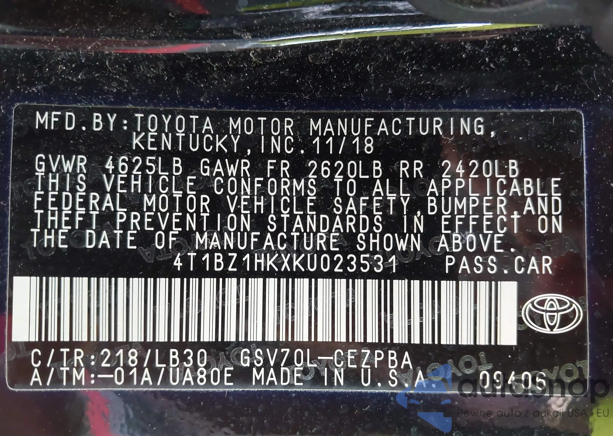 • VIN 4T1BZ1HKXKU023531