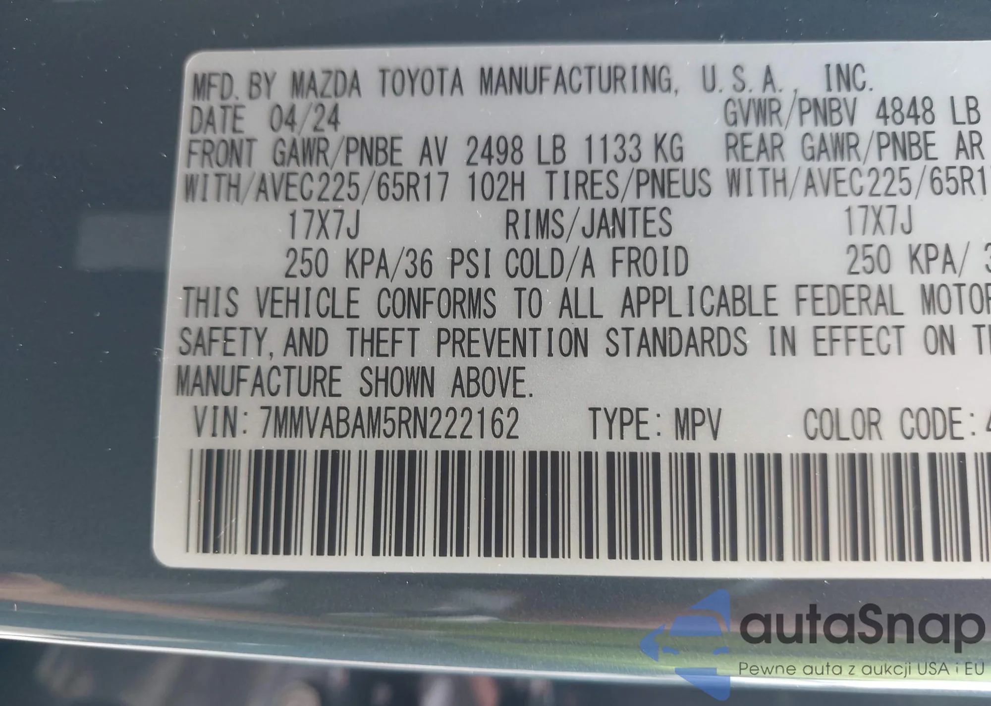• VIN 7MMVABAM5RN222162