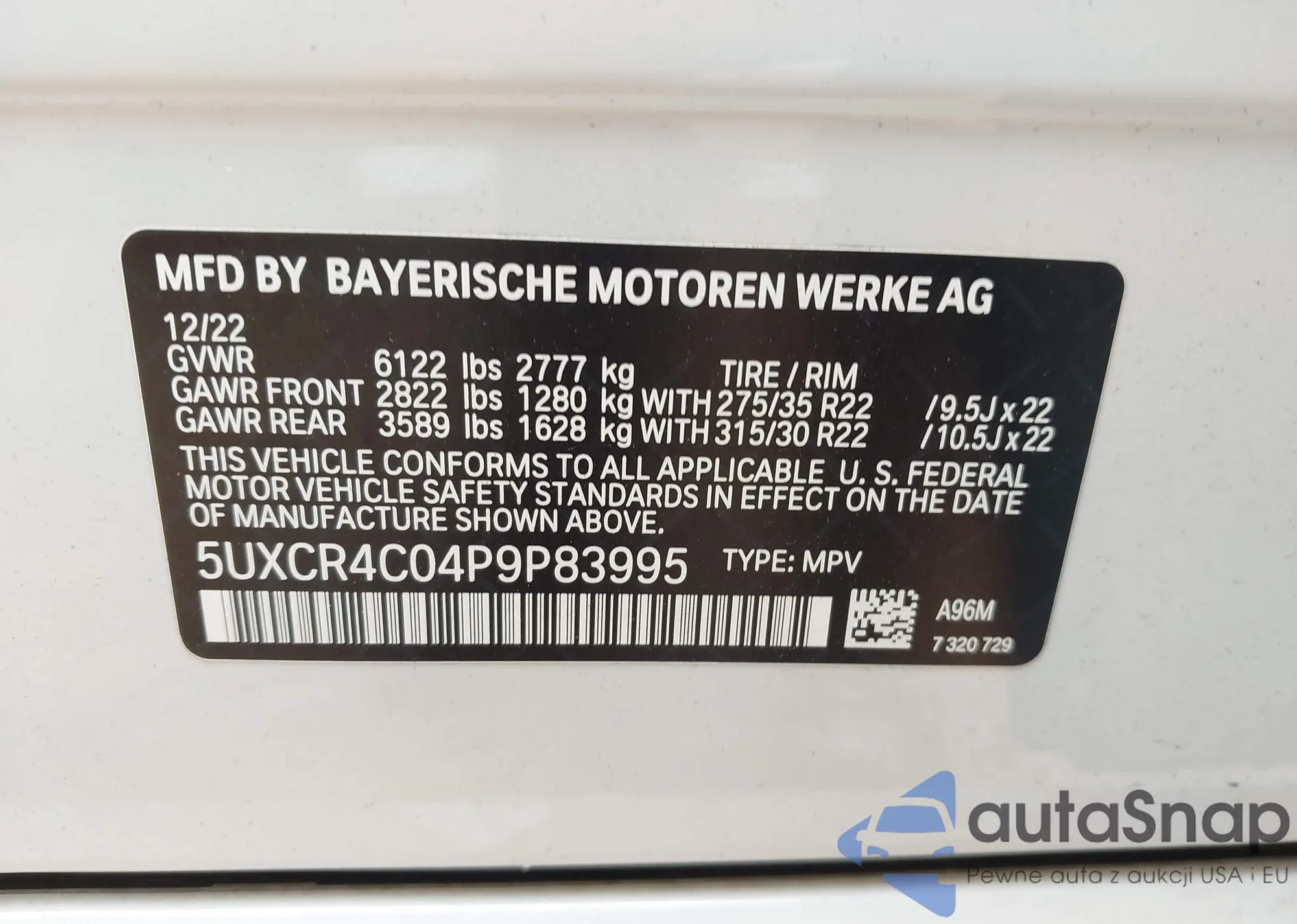 LOT: 42924180 VIN: 5UXCR4C04P9P83995
