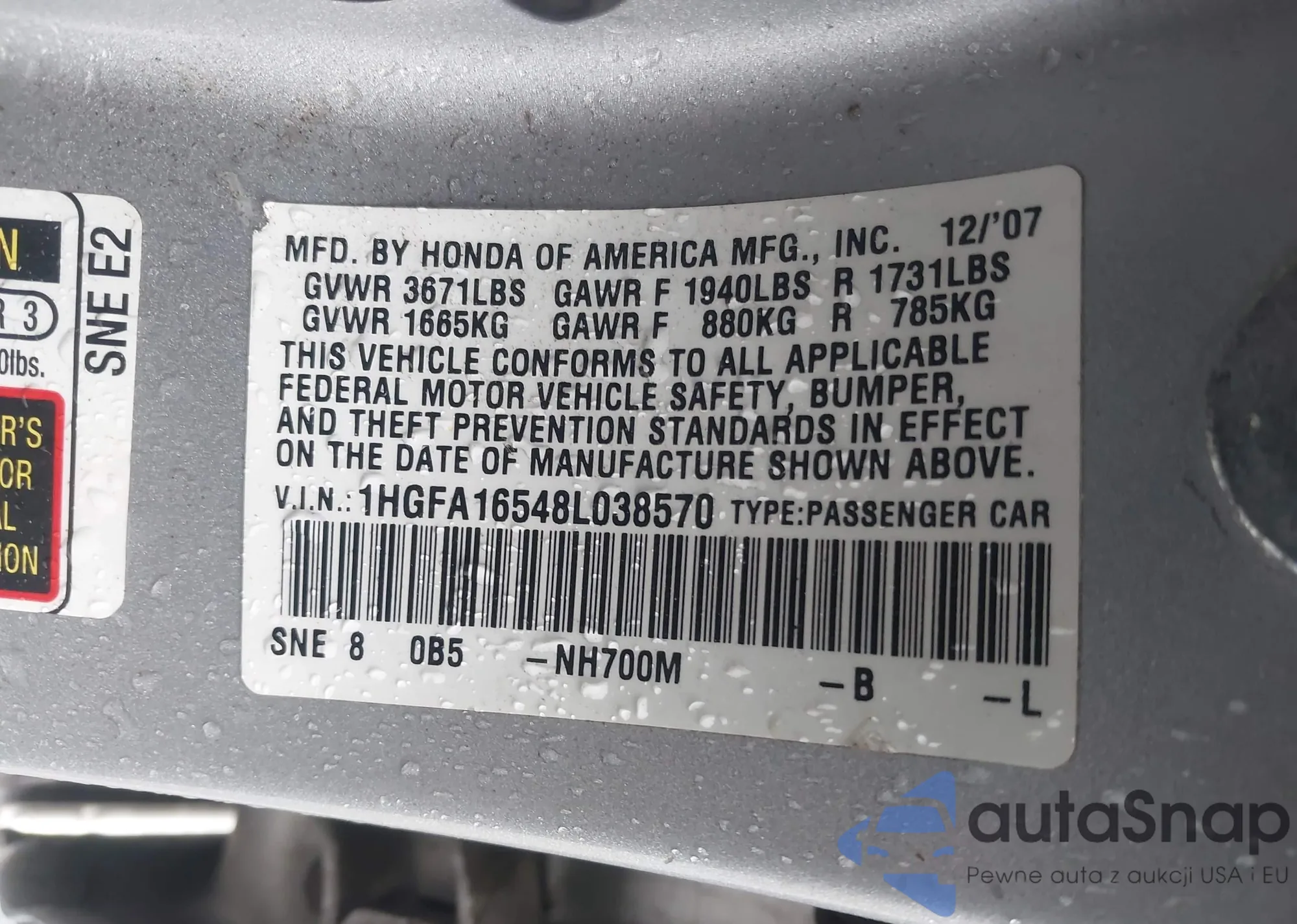 LOT: 43032868 VIN: 1HGCM66447A082495