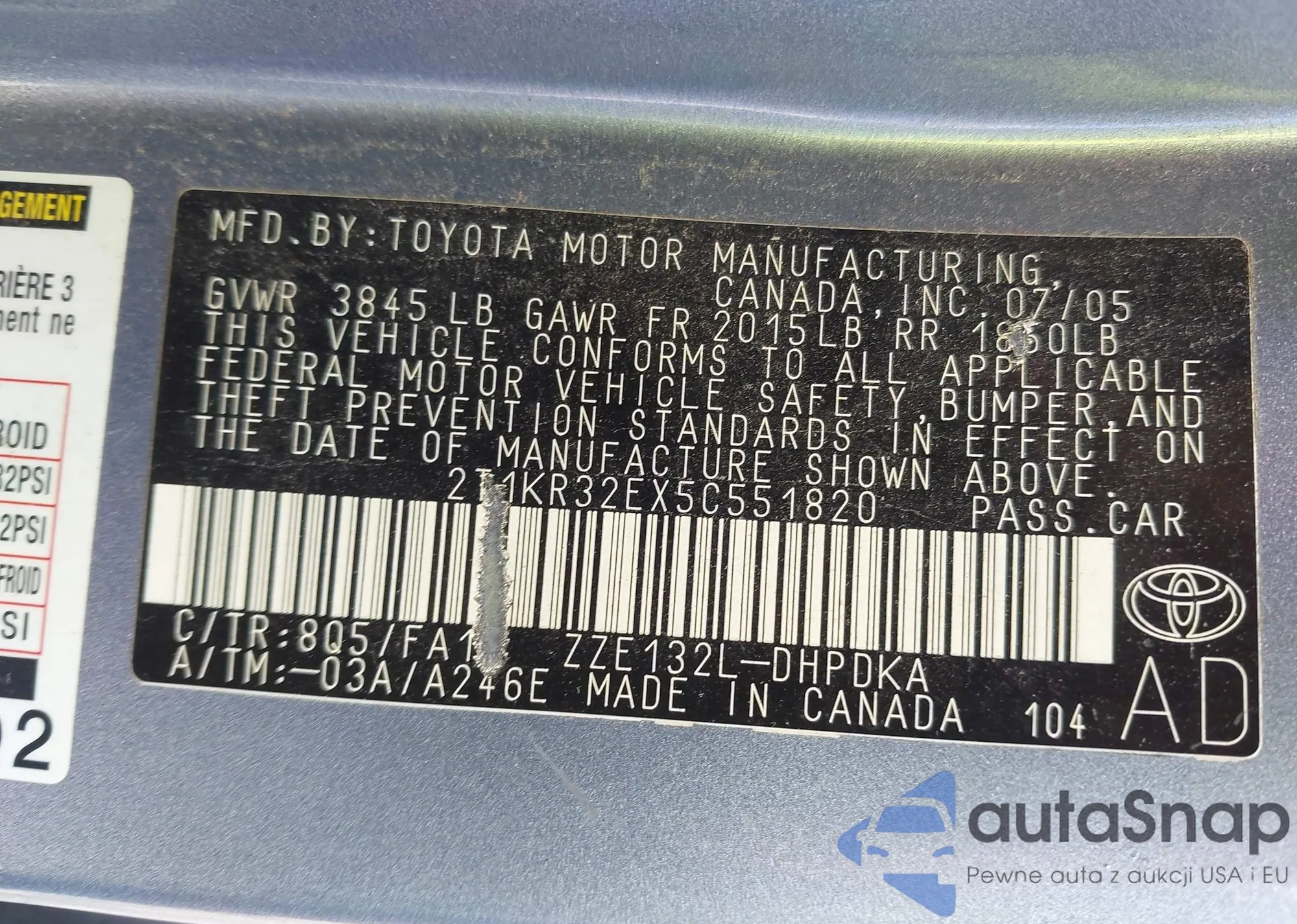 • VIN 4T1G11AK0NU684724