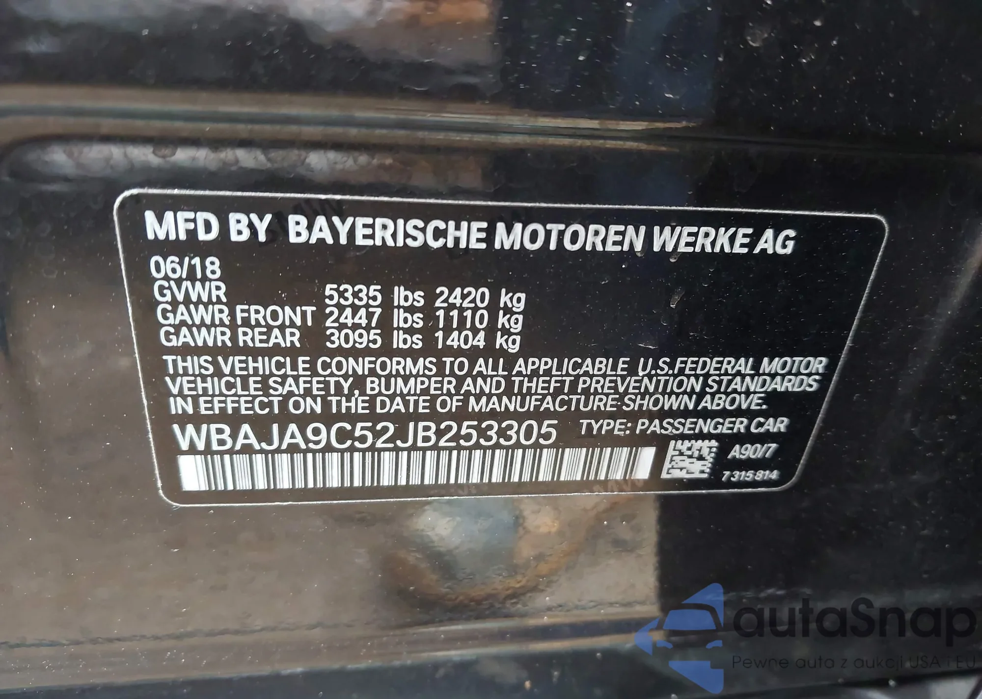 • VIN WBAJA9C52JB253305