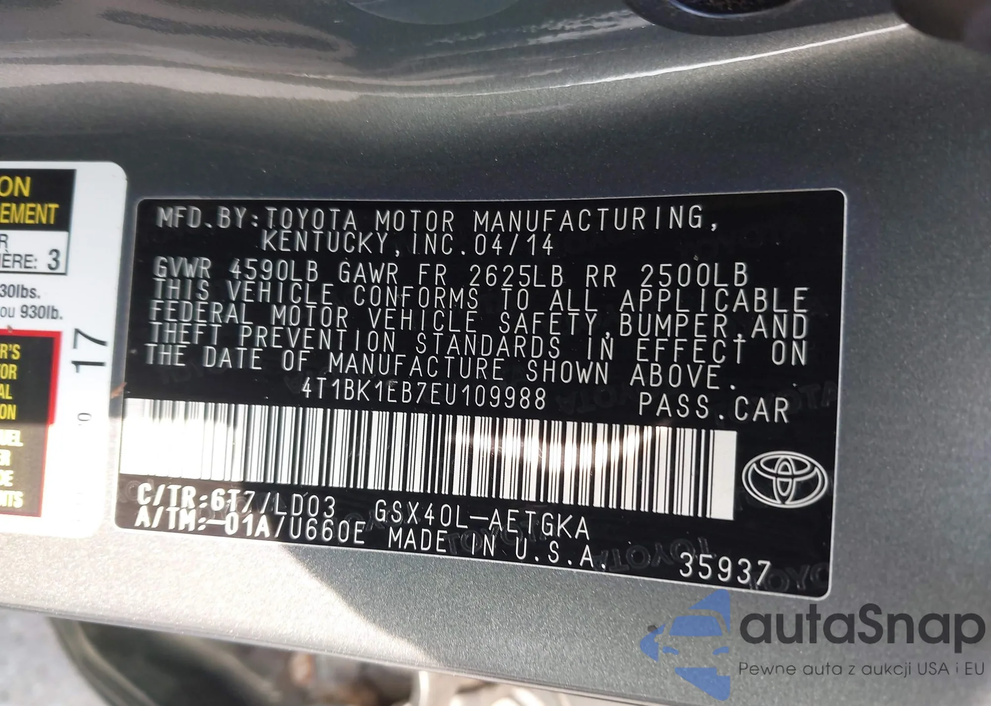 LOT: 42856557 VIN: 4T1BK1EB7EU109988