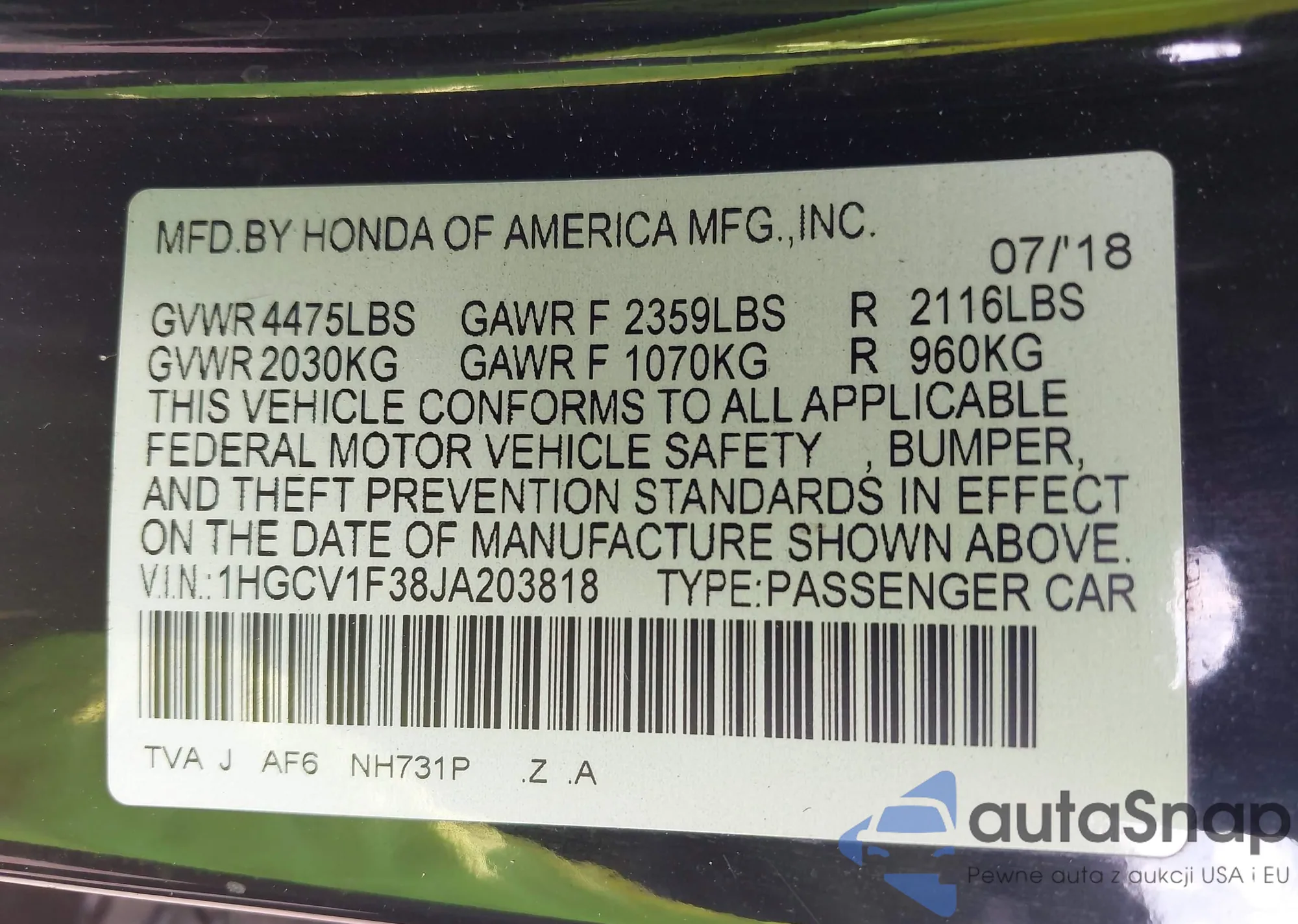 • VIN 1HGCV1F38JA203818
