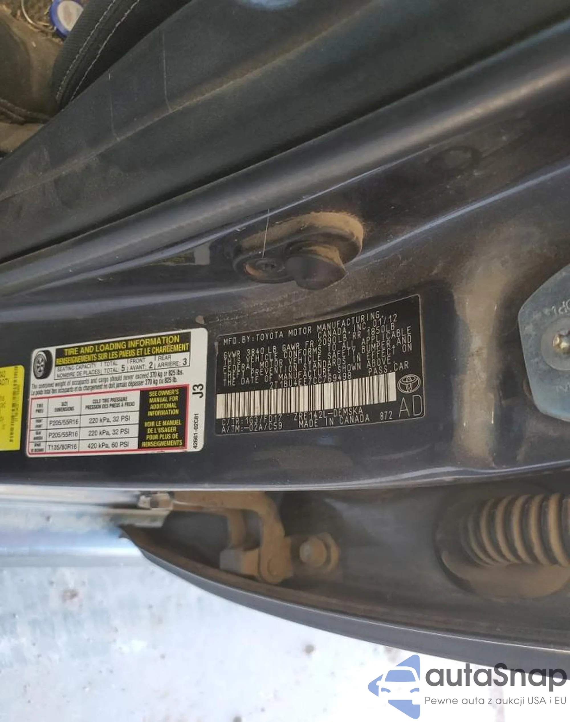 • VIN 2T1BU4EE7CC769498