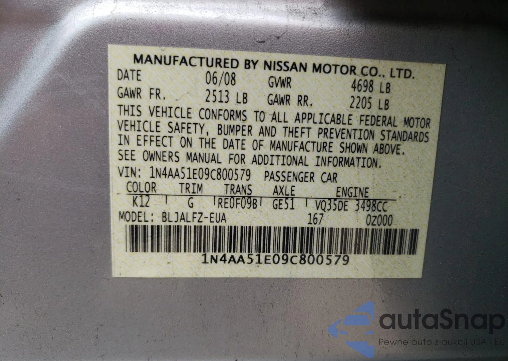 LOT: 69048525 VIN: 1N4AL3AP9FC248222