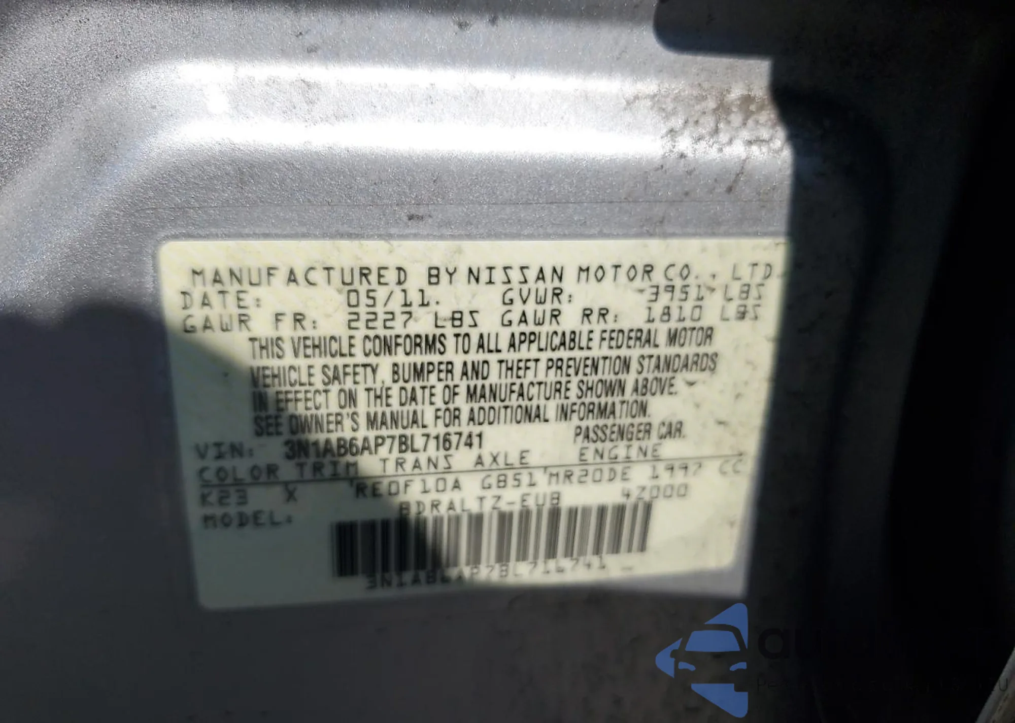 • VIN 3N1AB6AP7BL716741