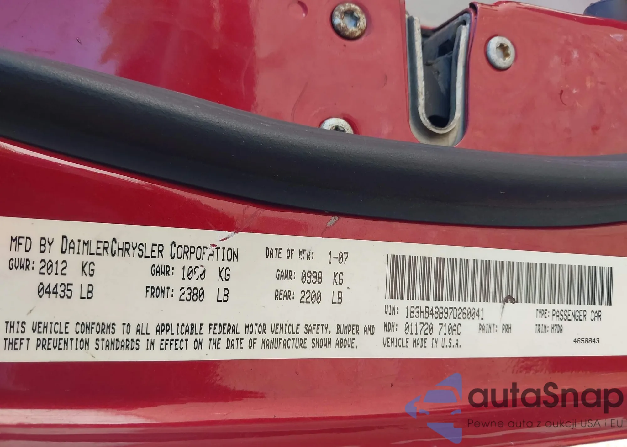 • VIN 1B3HB48B97D260041