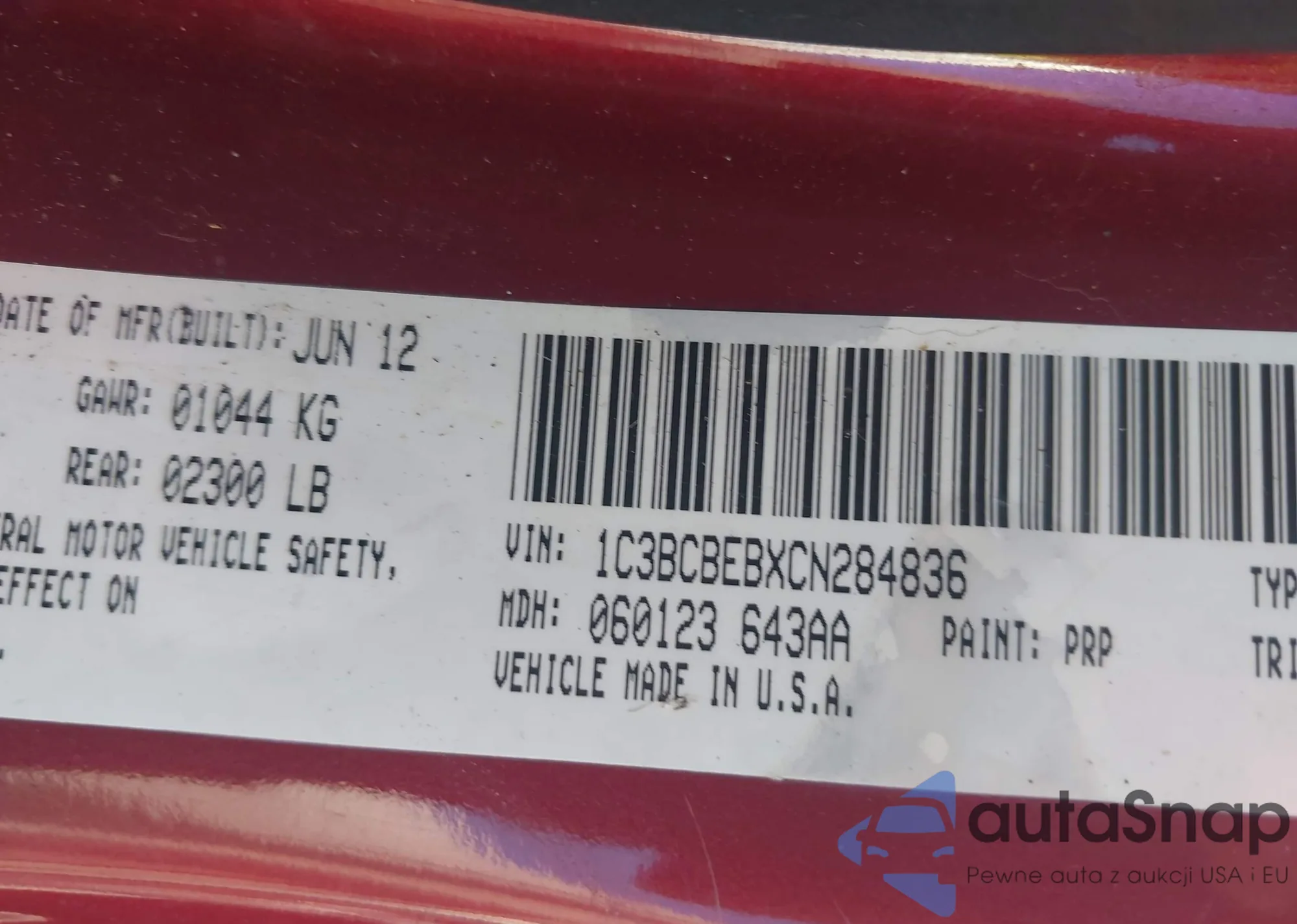 • VIN 1C3BCBEBXCN284836