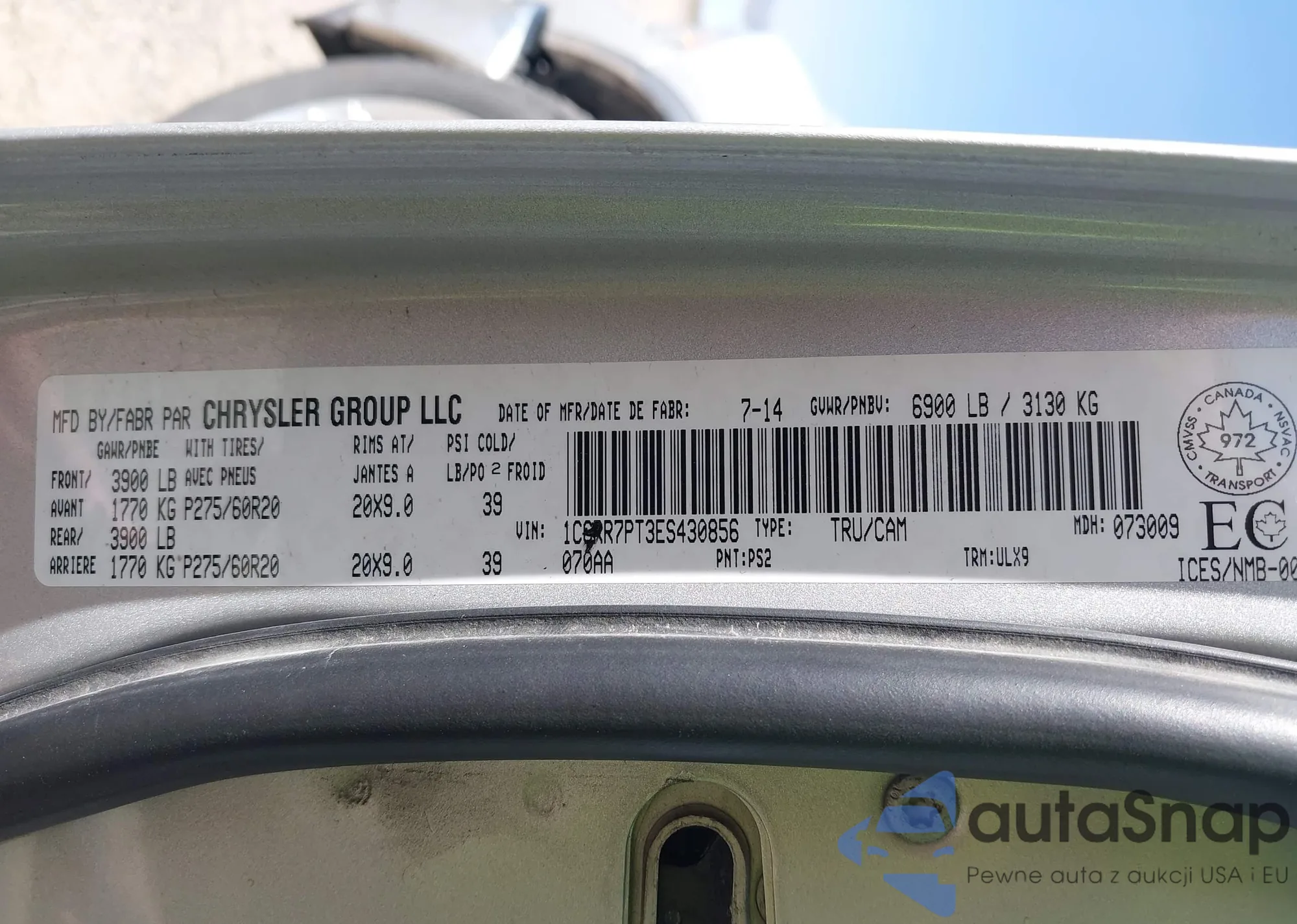 LOT: 43248326 VIN: 1C6RR7PT3ES430856