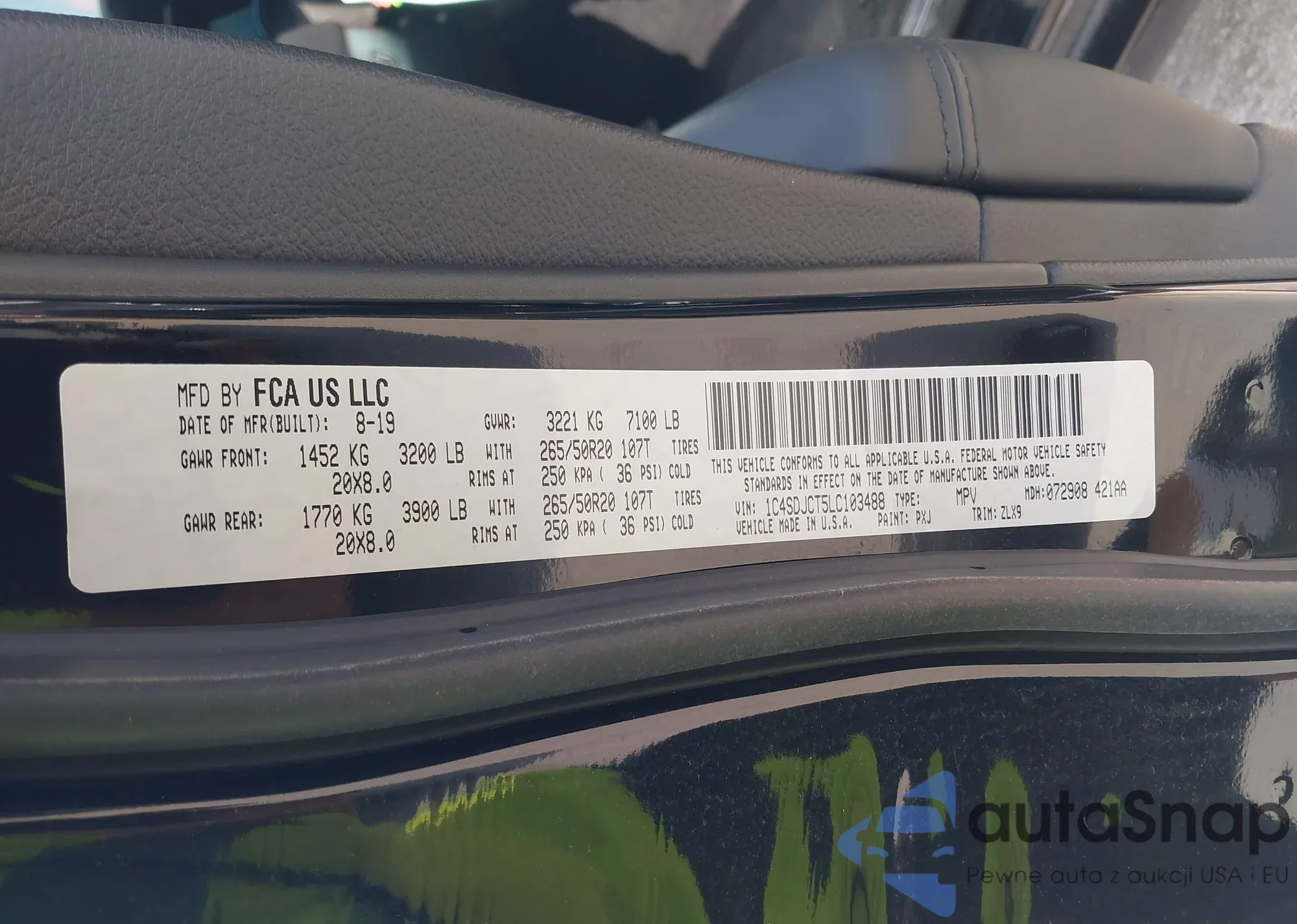 LOT: 43249178 VIN: 1C4SDJCT5LC103488