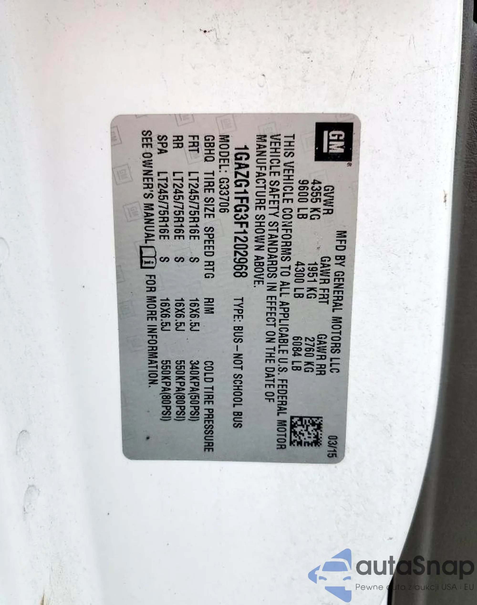 LOT: 80705395 VIN: 1GAZG1FG3F1202968