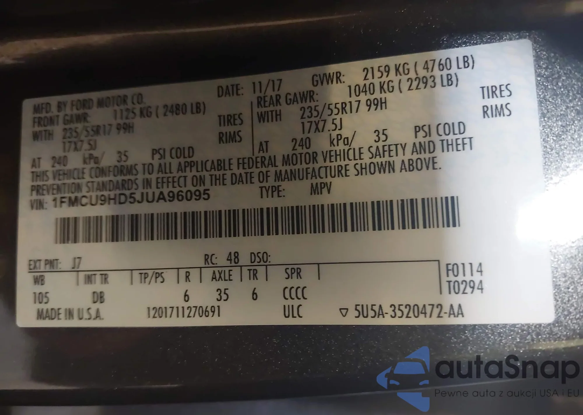 • VIN 2FMDK3KC5BBB66595