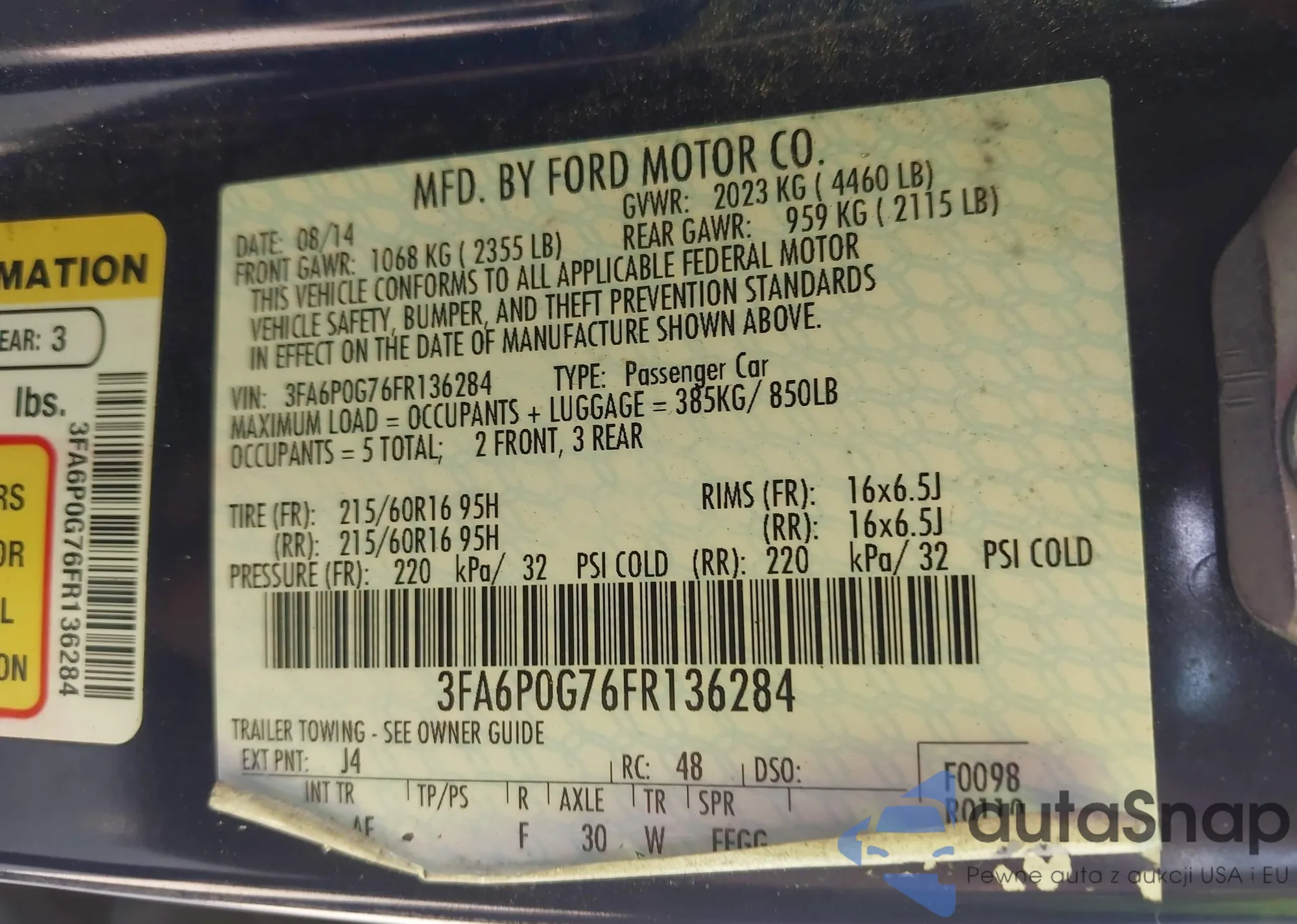 • VIN 3FA6P0G76FR136284