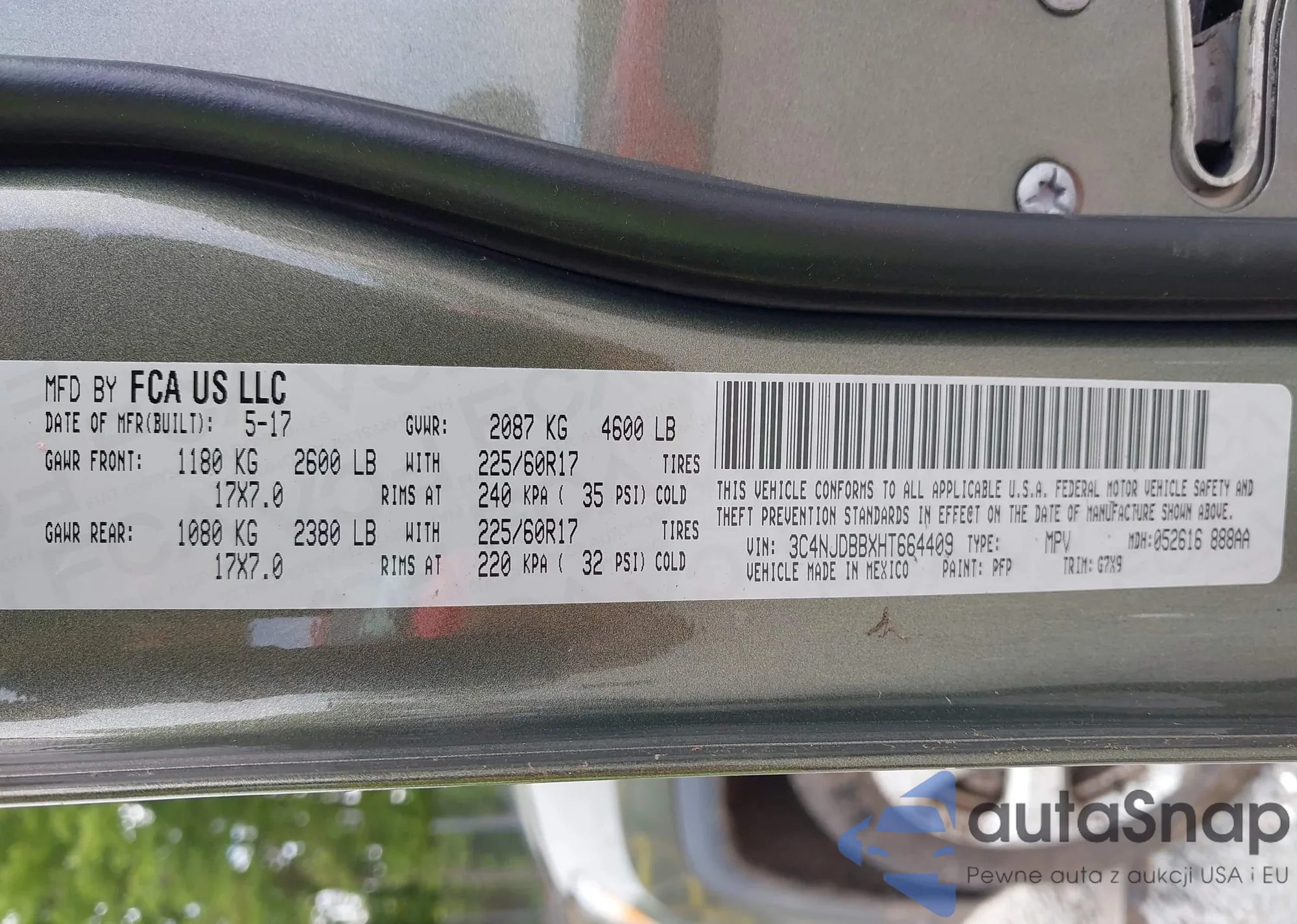 LOT: 43019618 VIN: 3C4NJDBBXHT664409