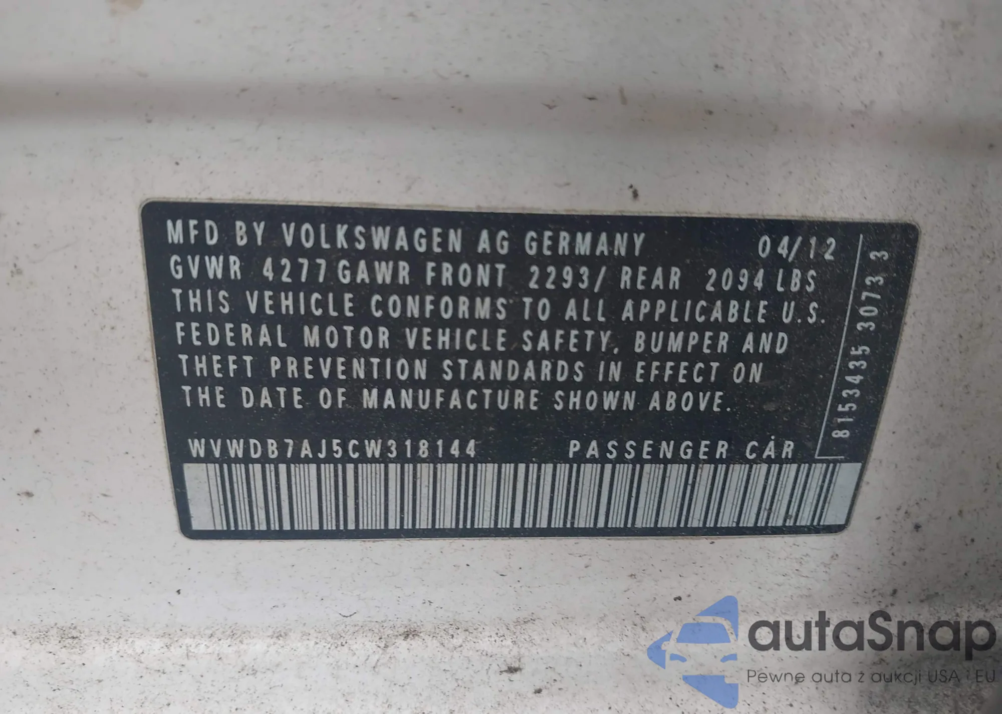 • VIN 2T3BF4DV6BW104074