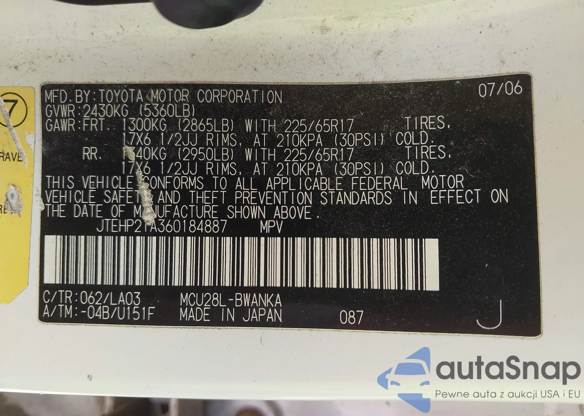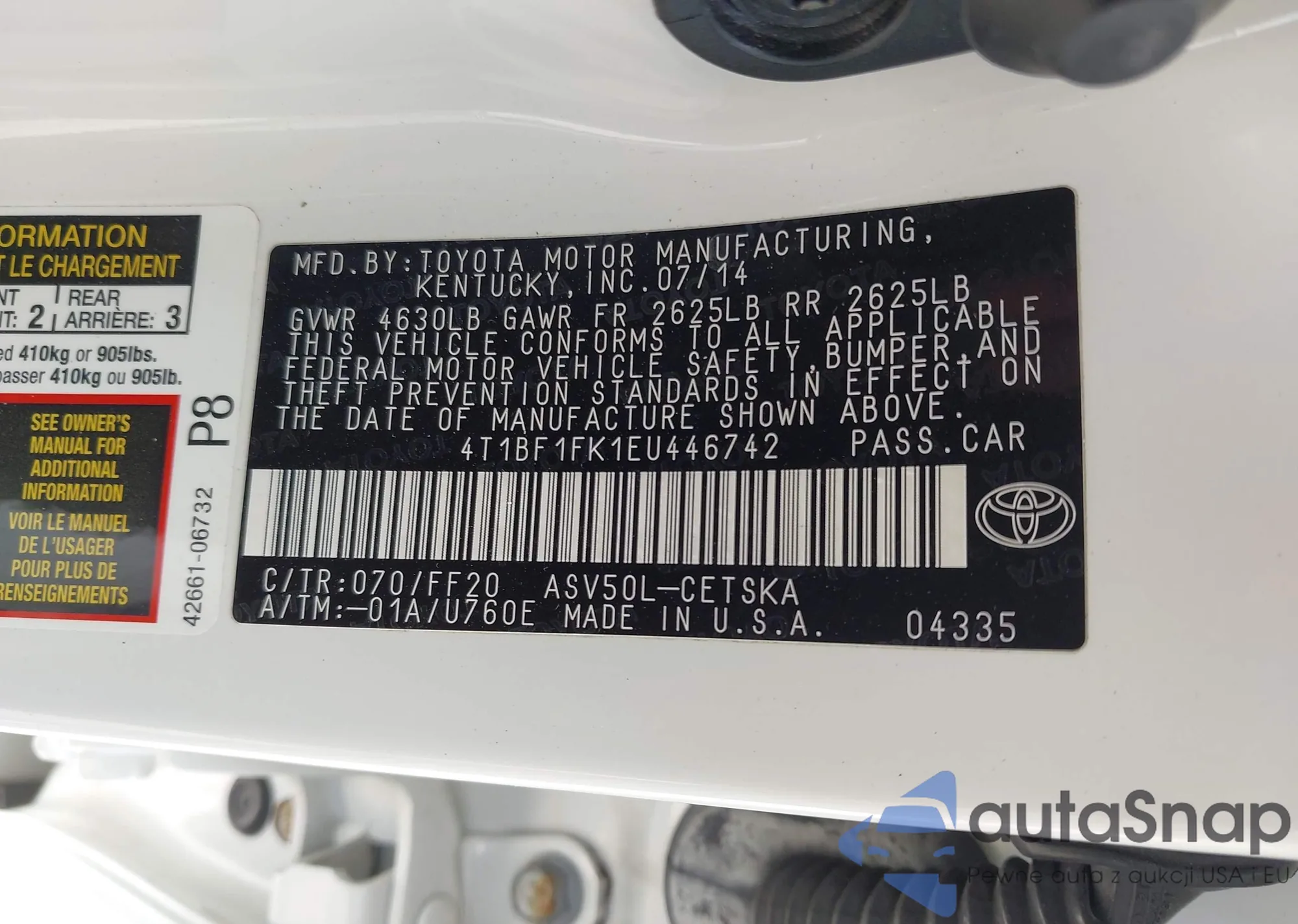 • VIN 4T1BF1FK1EU446742