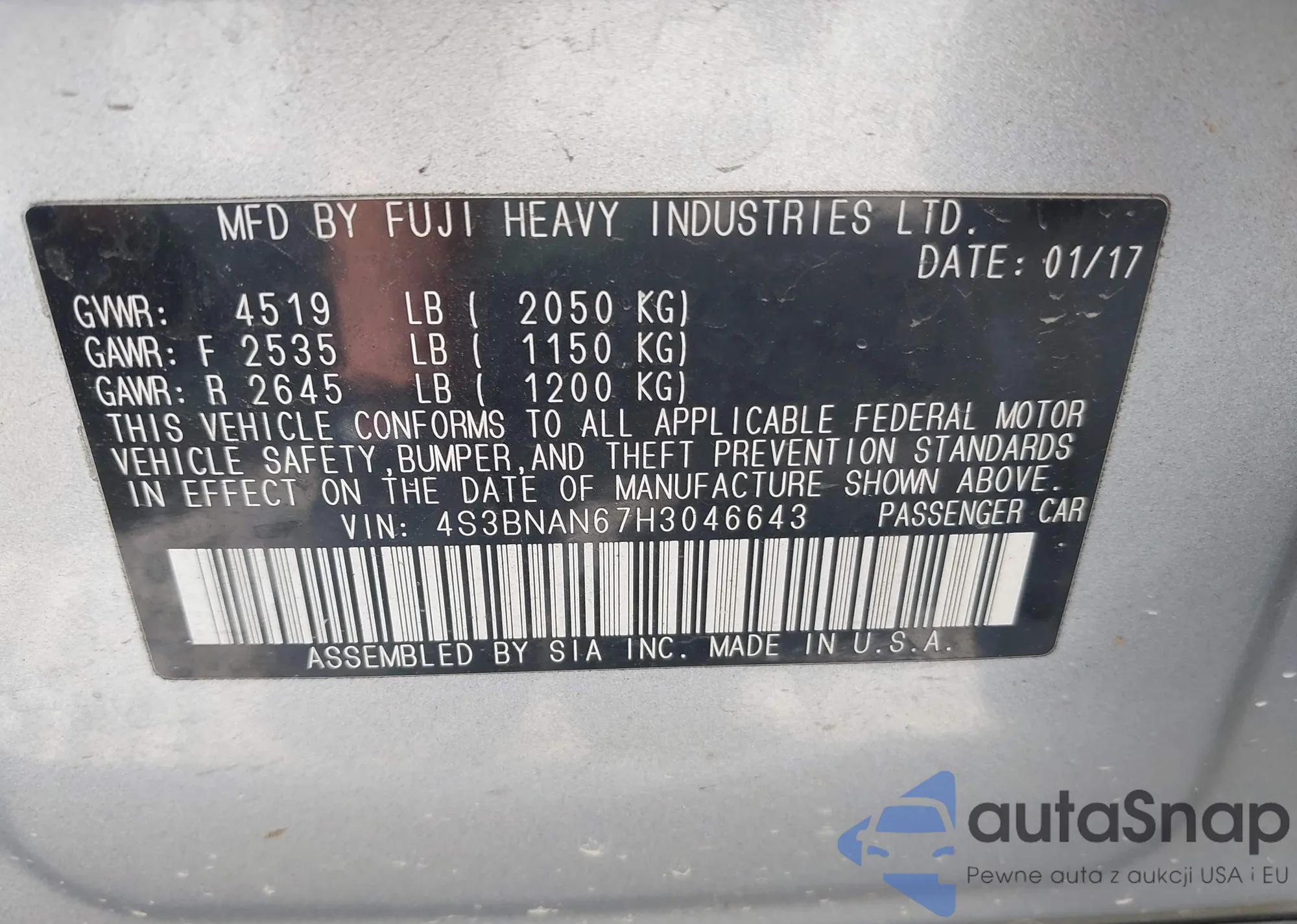 • VIN JF2SHAEC7BH716510