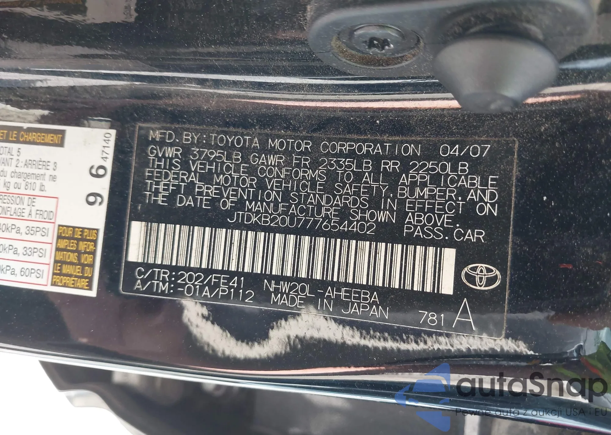 LOT: 43094525 VIN: JTDKB20U777654402