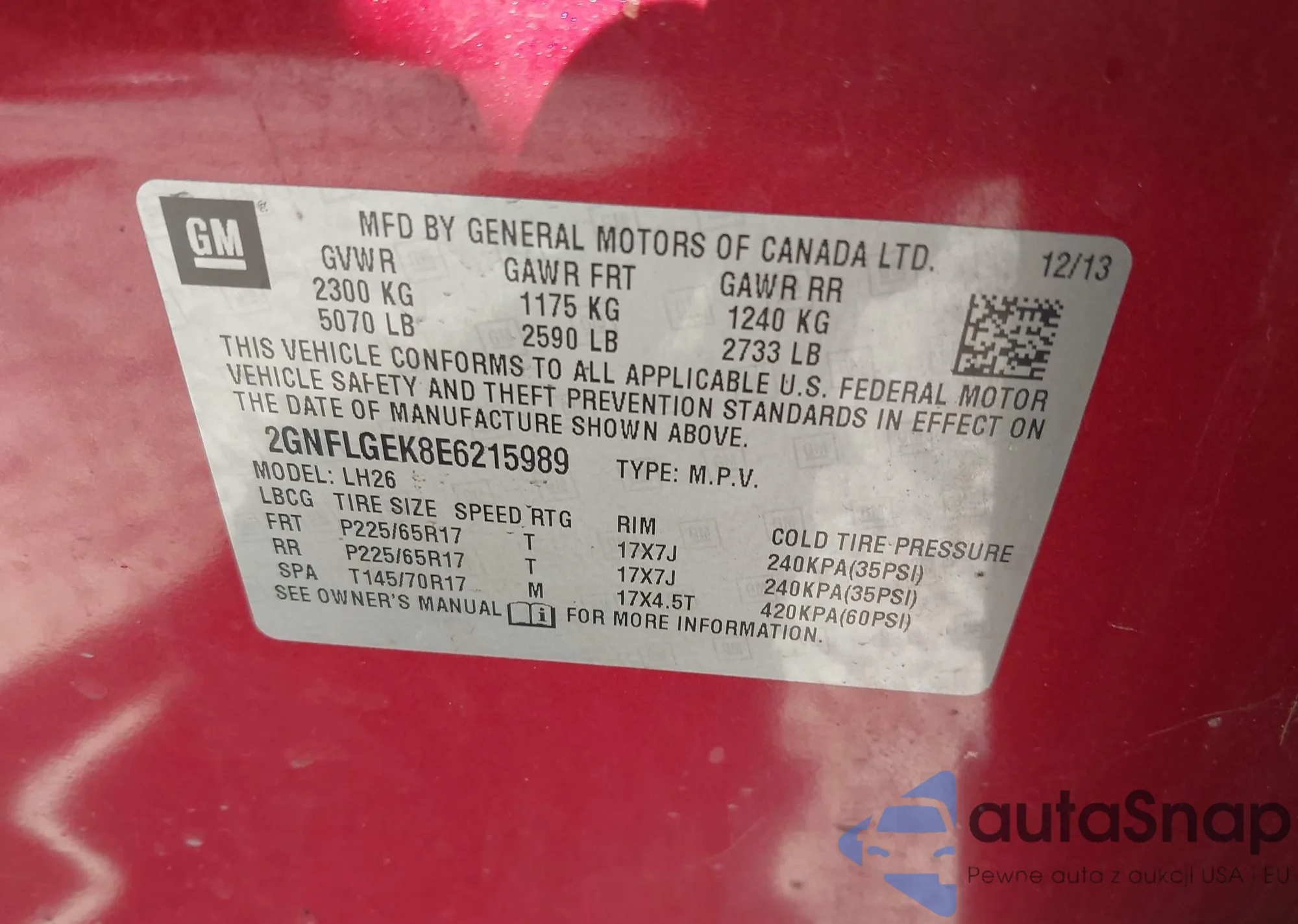 • VIN 2GNFLGEK8E6215989