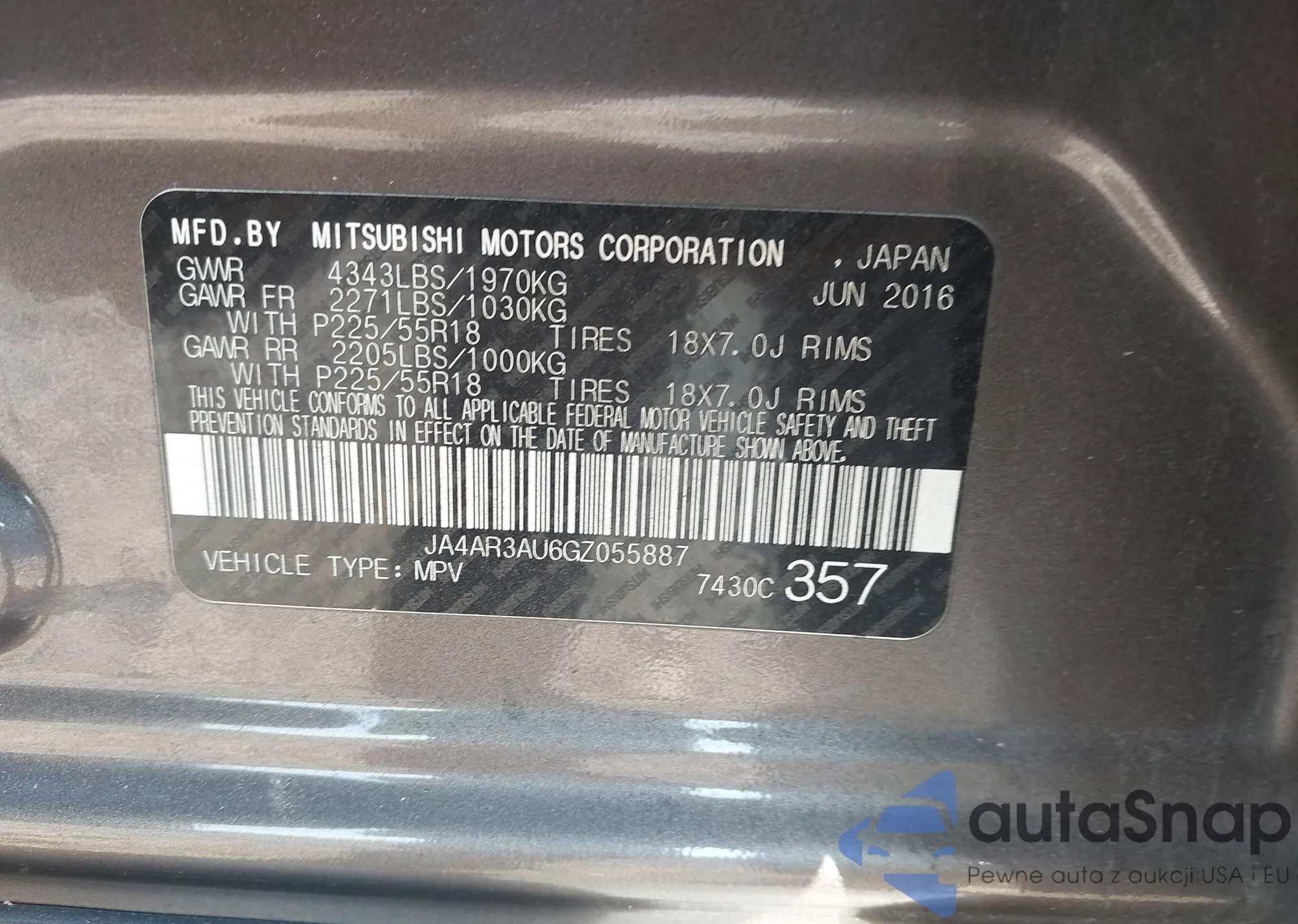 LOT: 43180665 VIN: JA4AR3AU6GZ055887
