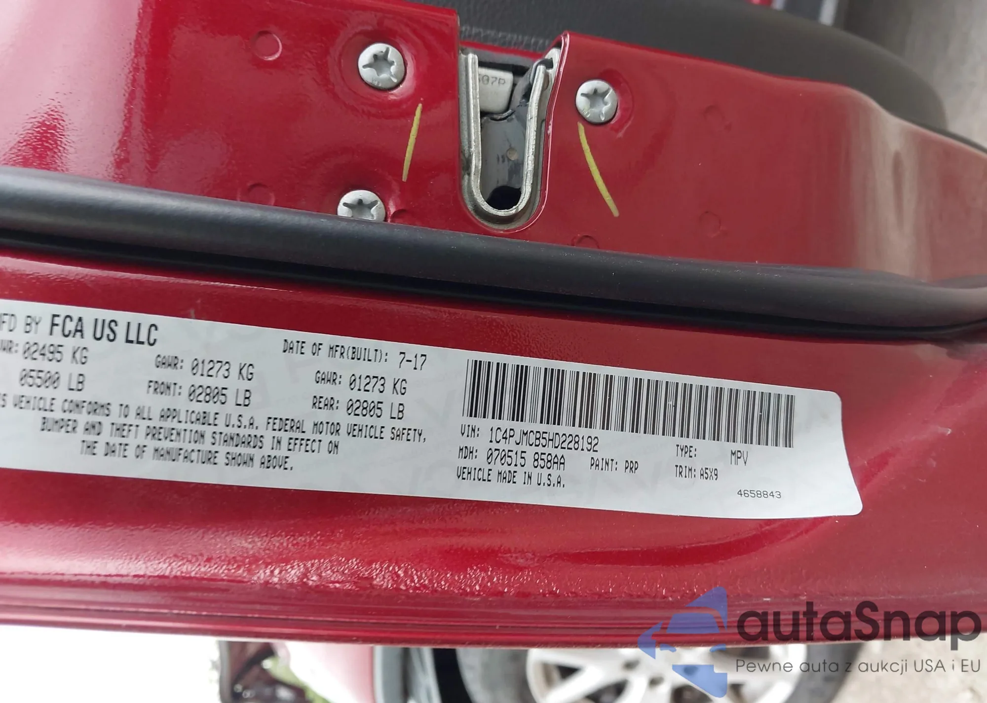 LOT: 42959423 VIN: 3C4NJCAB4JT322374