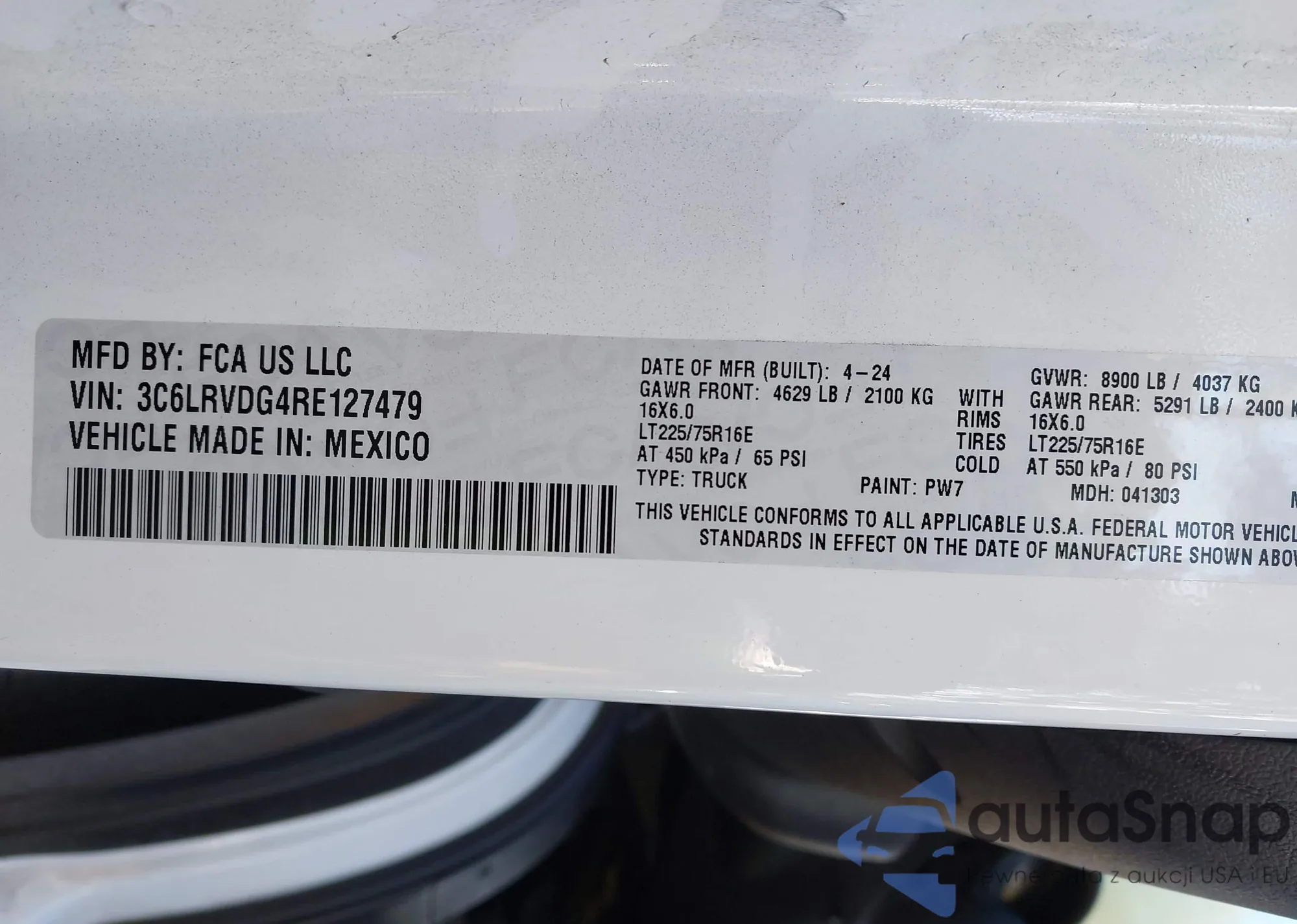 • VIN 3C6LRVDG4RE127479