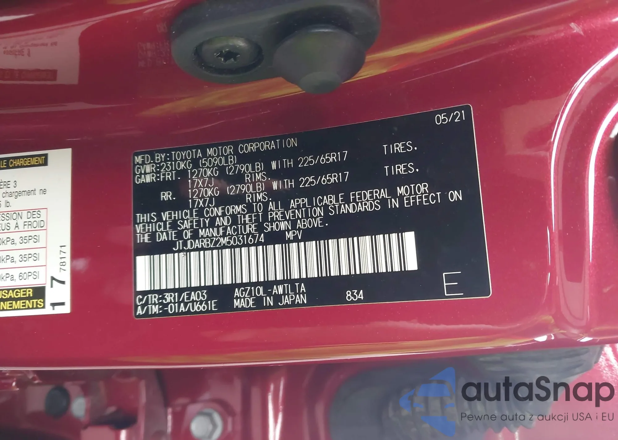 LOT: 43064861 VIN: JTJDARBZ2M5031674