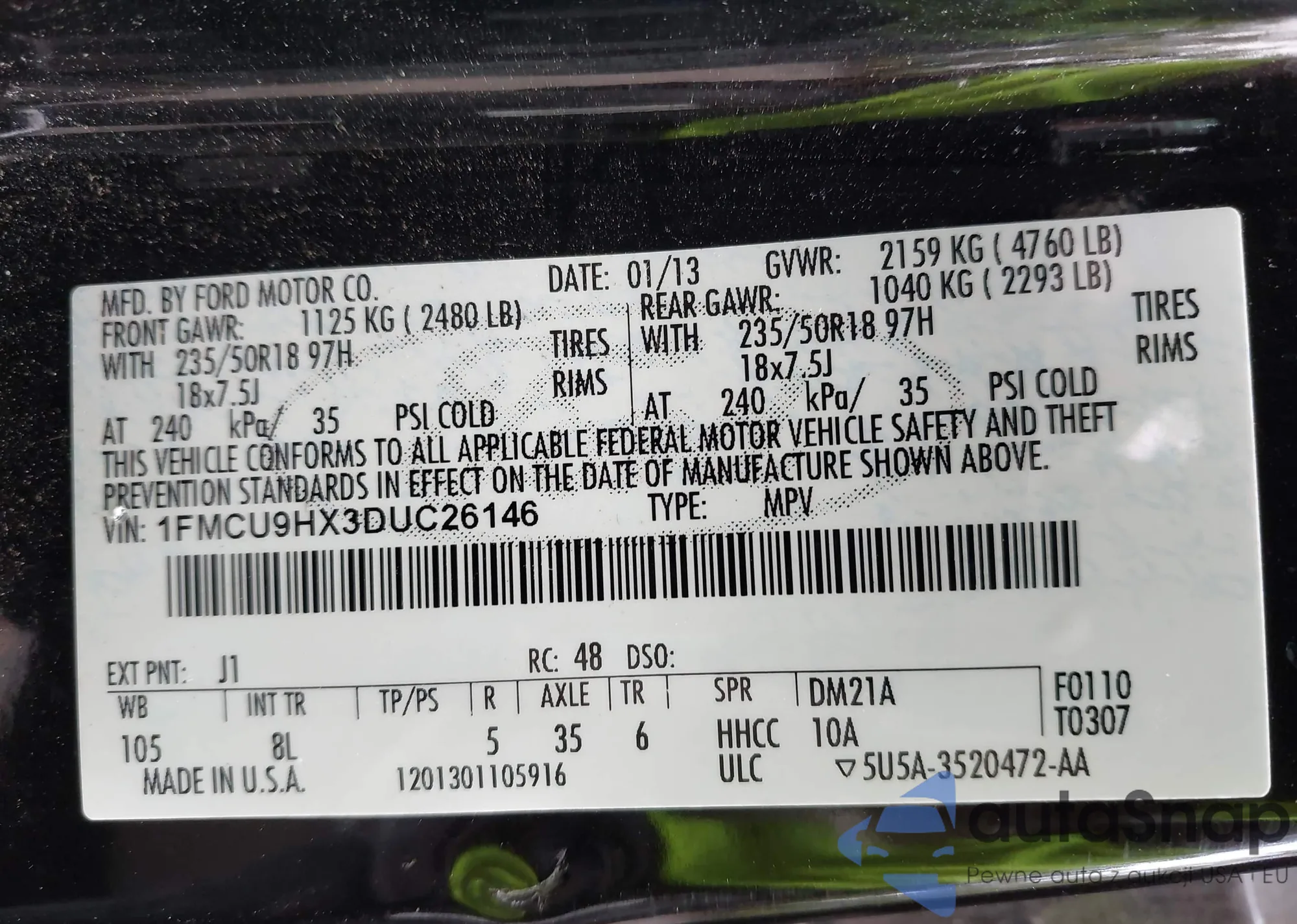 LOT: 43204449 VIN: 3FA6P0HR6DR187121