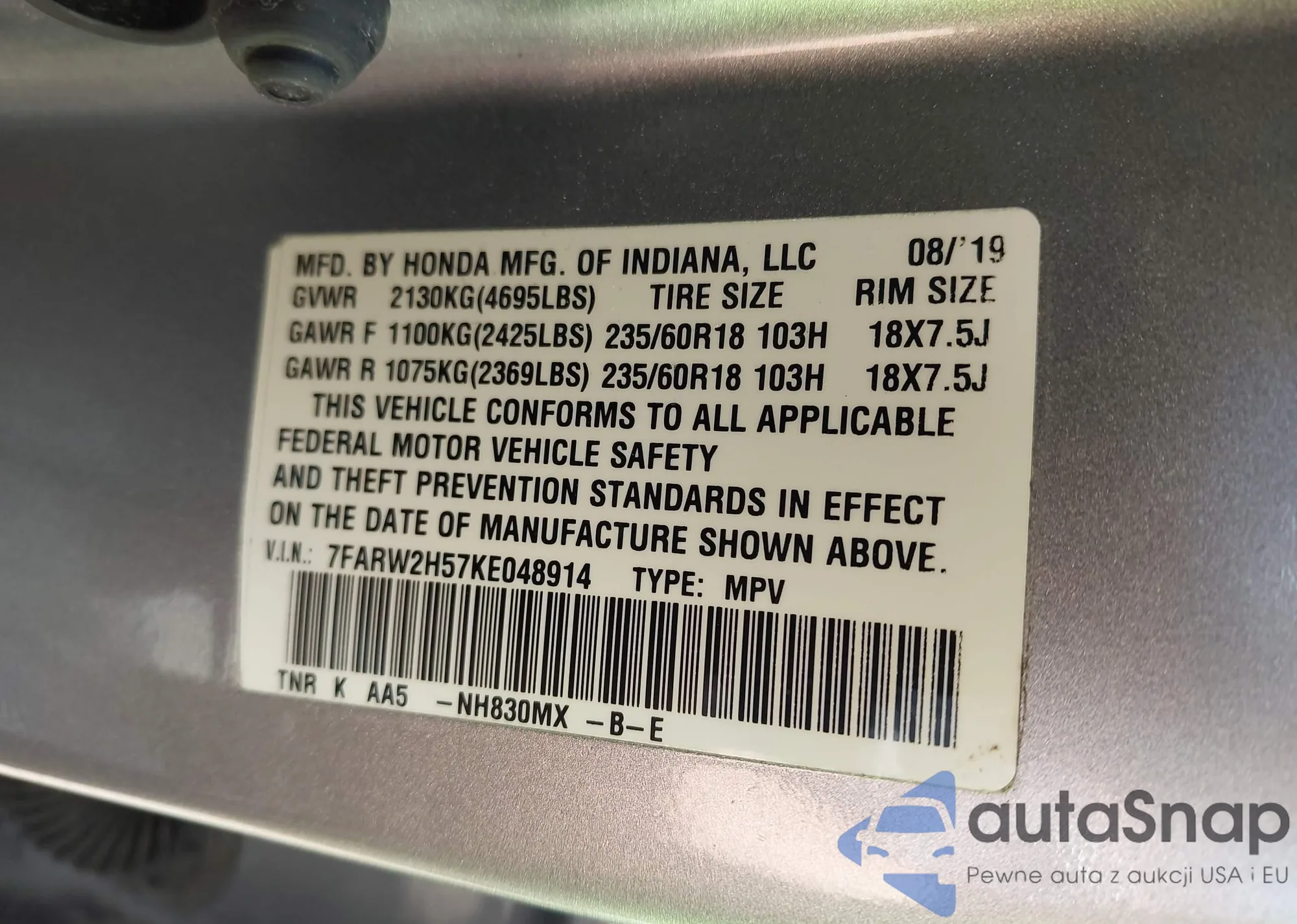• VIN 7FARW2H57KE048914
