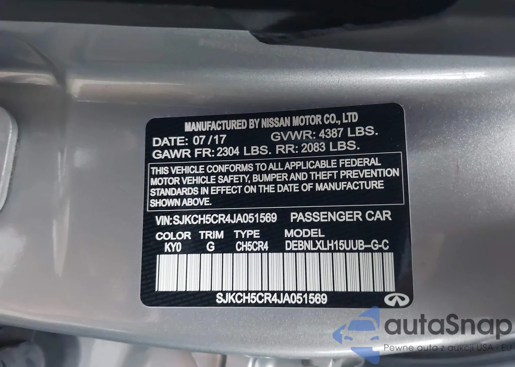LOT: 43011490 VIN: SJKCH5CR4JA051569