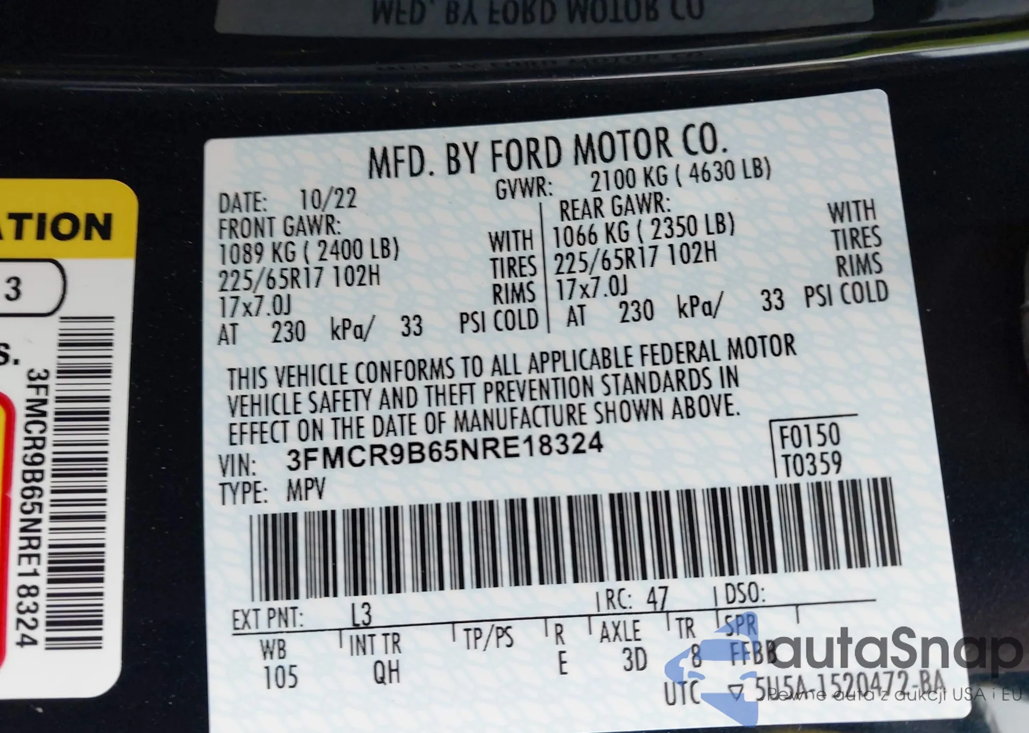 • VIN 3FMCR9B65NRE18324