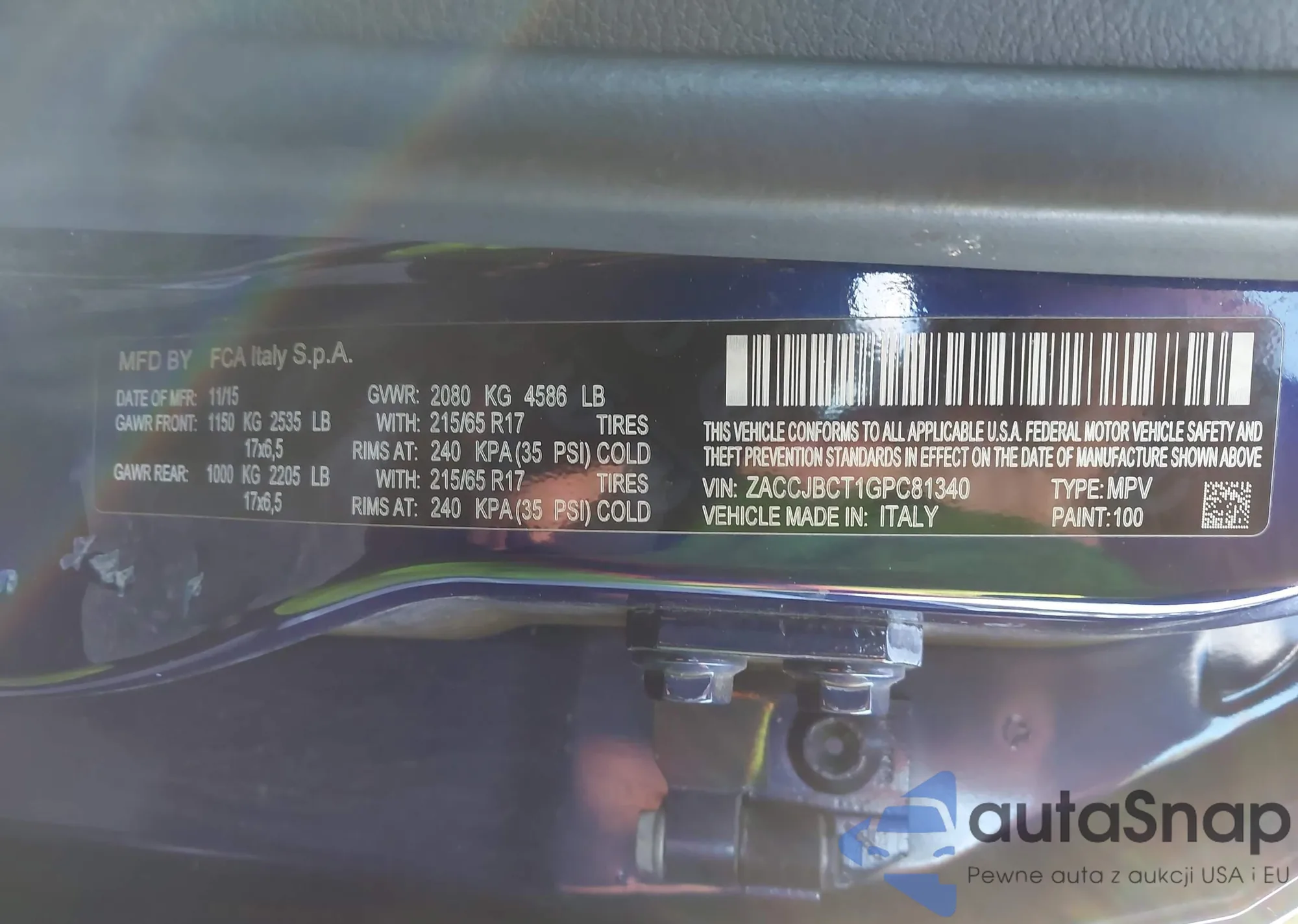 LOT: 43223676 VIN: ZACCJBCT1GPC81340