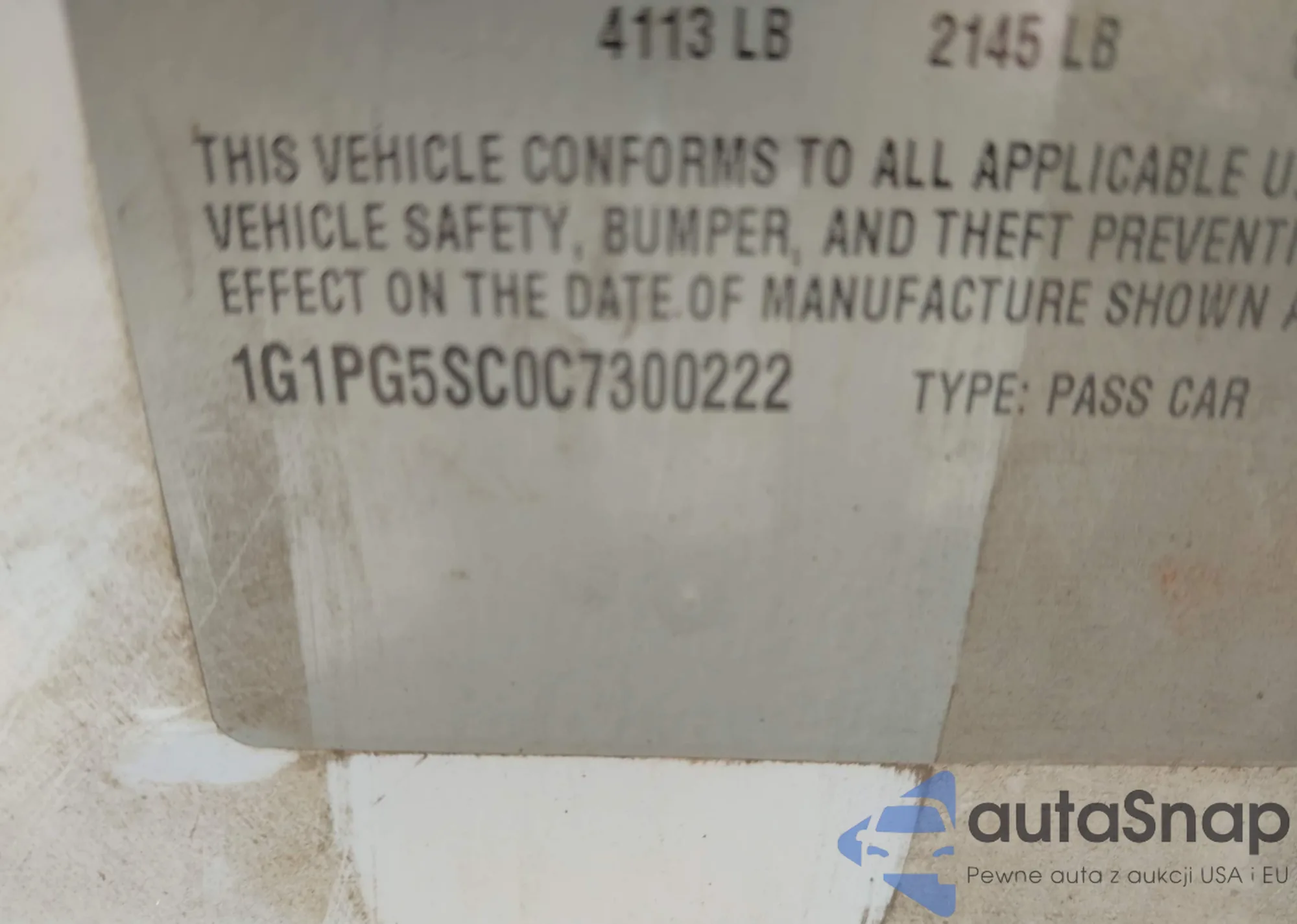 LOT: 42152575 VIN: 1G1PG5SC0C7300222